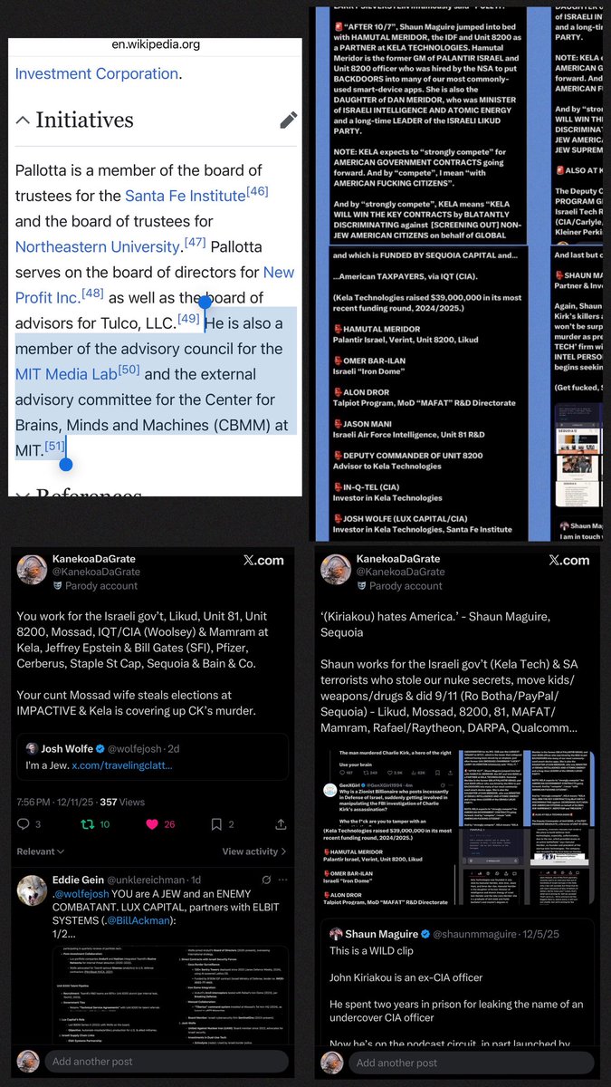 That’s bizarre AF. Guess what… JAMES PALLOTTA is ALSO a TRUSTEE of SANTA FE INSTITUTE w/JOSH WOLFE of LUX CAPITAL & KELA TECH. KELA: Likud, Unit 8200, Unit 81, Palantir Israel, Team8 (AIG/UnitedHealth/8200), Rafael Defense Systems (Iron Dome), MAFAT, Mamram, IQT/CIA & SEQUOIA. https://t.co/JKD2ndZPRS