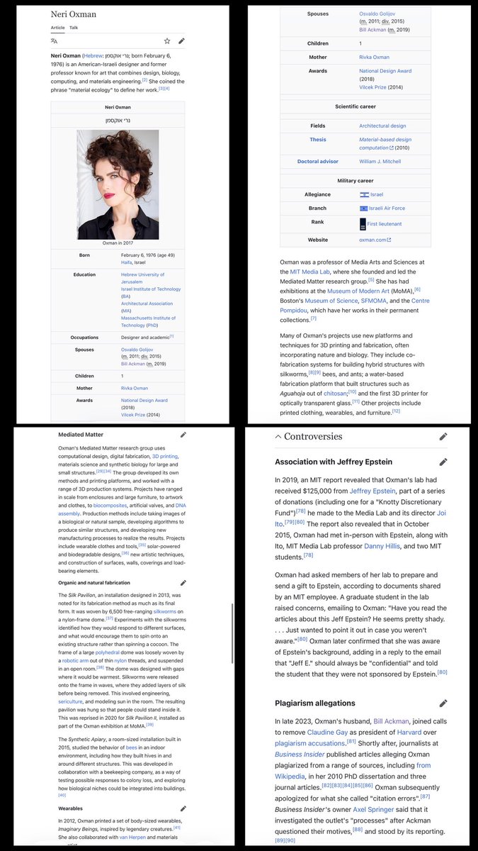‘WE MUST MOVE PAST THE EPSTEIN FILES!’ That HASBARA slop being recited in LOCKSTEP by JEWS/ZIOS/PALANTIR CUCKS makes sense now.😒 *NERI OXMAN (Ackman’s WIFE) was FIRST LIEUTENANT in the ISRAELI AIR FORCE & GIVEN HER OWN LAB (MML) by MIT, WHILE SHE WAS MEETING W/JEFFREY EPSTEIN. https://t.co/ZzcXJjor1a