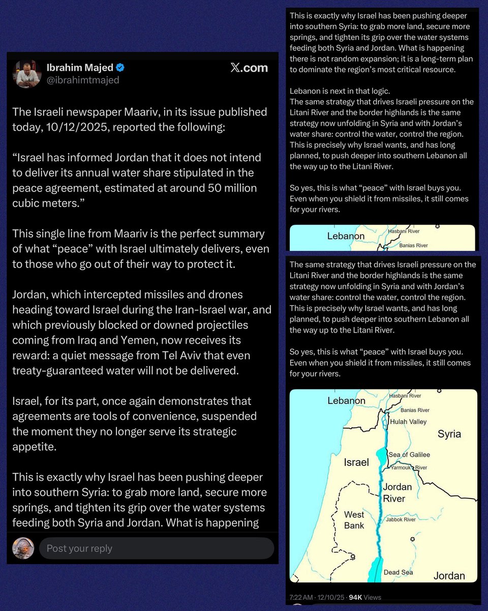 “Israel has informed Jordan… it does NOT intend to deliver its annual water share stipulated in… PEACE AGREEMENT.” *JORDAN DEFENDED ISRAEL IN 12DW! REPUBLICANS OVERSEAS ZELL: Gen Counsel; Israel Chair ASH: Chair/Founder; JFSA (Mossad) Co-Chair; RNC Caucus Chair; AZ DELEGATE https://t.co/QwHoaWvfbR