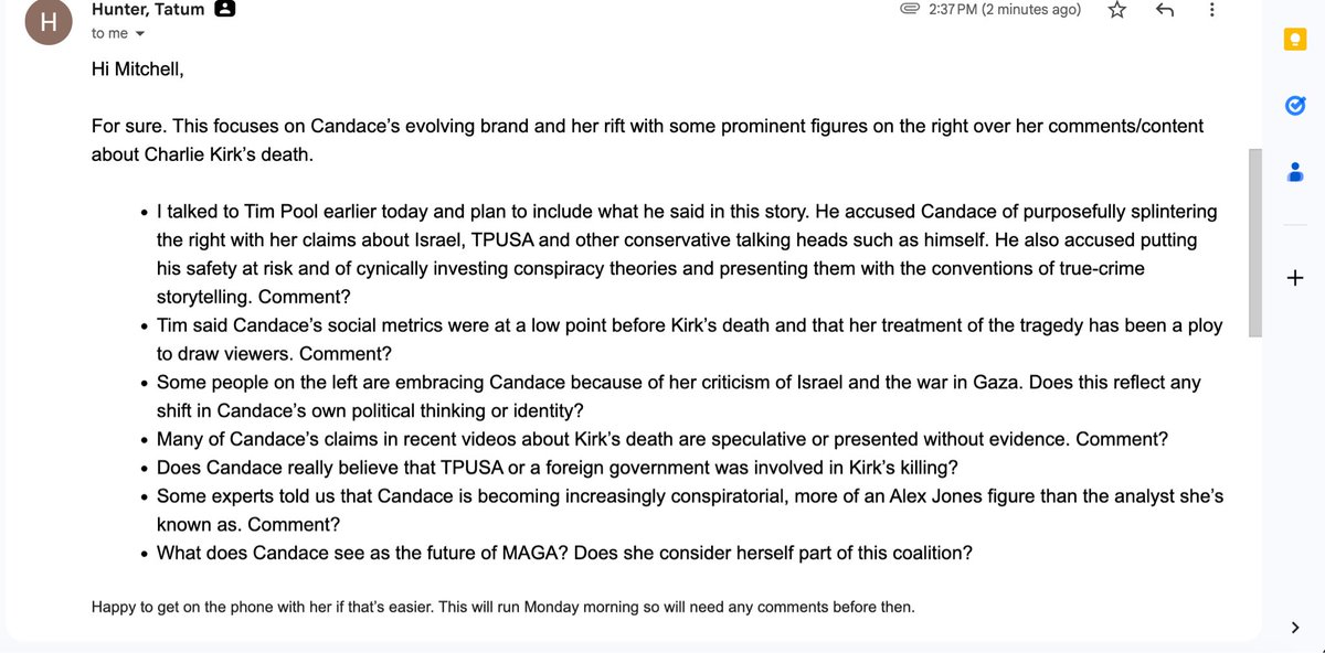 Everyone ‘dunking on’ Candace for not agreeing to meet with potential accessories to Charlie Kirk’s murder should also be considered an accessory going forward.