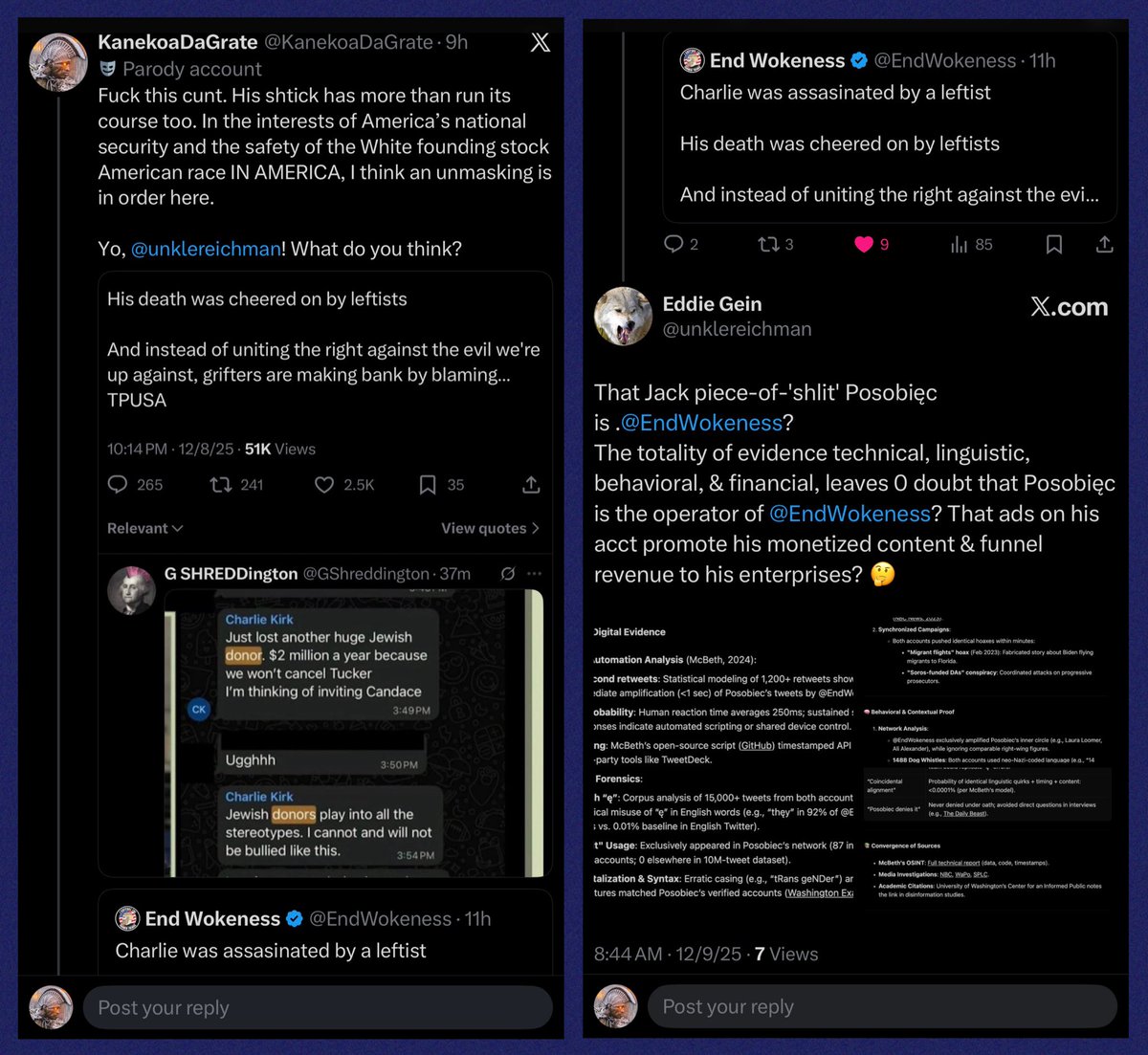 Ah, so @EndWokeness is @JackPosobiec from Human Events (Chamberlain, Kassam) & TPUSA, w/99.9999% confidence? *Makes sense. Poso WOULD run cover, since his boss at Human Events (Chamberlain) is an accessory & works w/murder suspect, Josh Hammer, at A3P/IAC, FedSoc & Edmund Burke. https://t.co/ULObnxZxHu