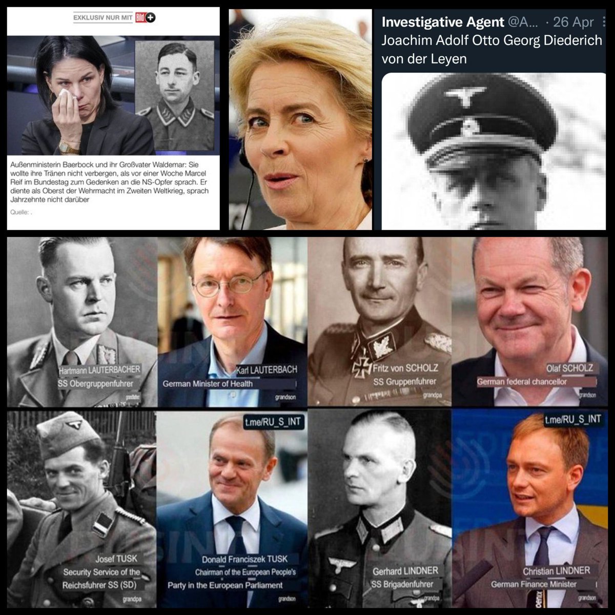 The Nuremberg trial was the biggest charade ever. The allies convicted just 140 people, mostly people with no real power. Top Nazis were all recruited by the CIA and NATO. Now, top German officials have family link to Hitler’s government. Von der Leyen, Scholz, Baerbock… the list goes on.