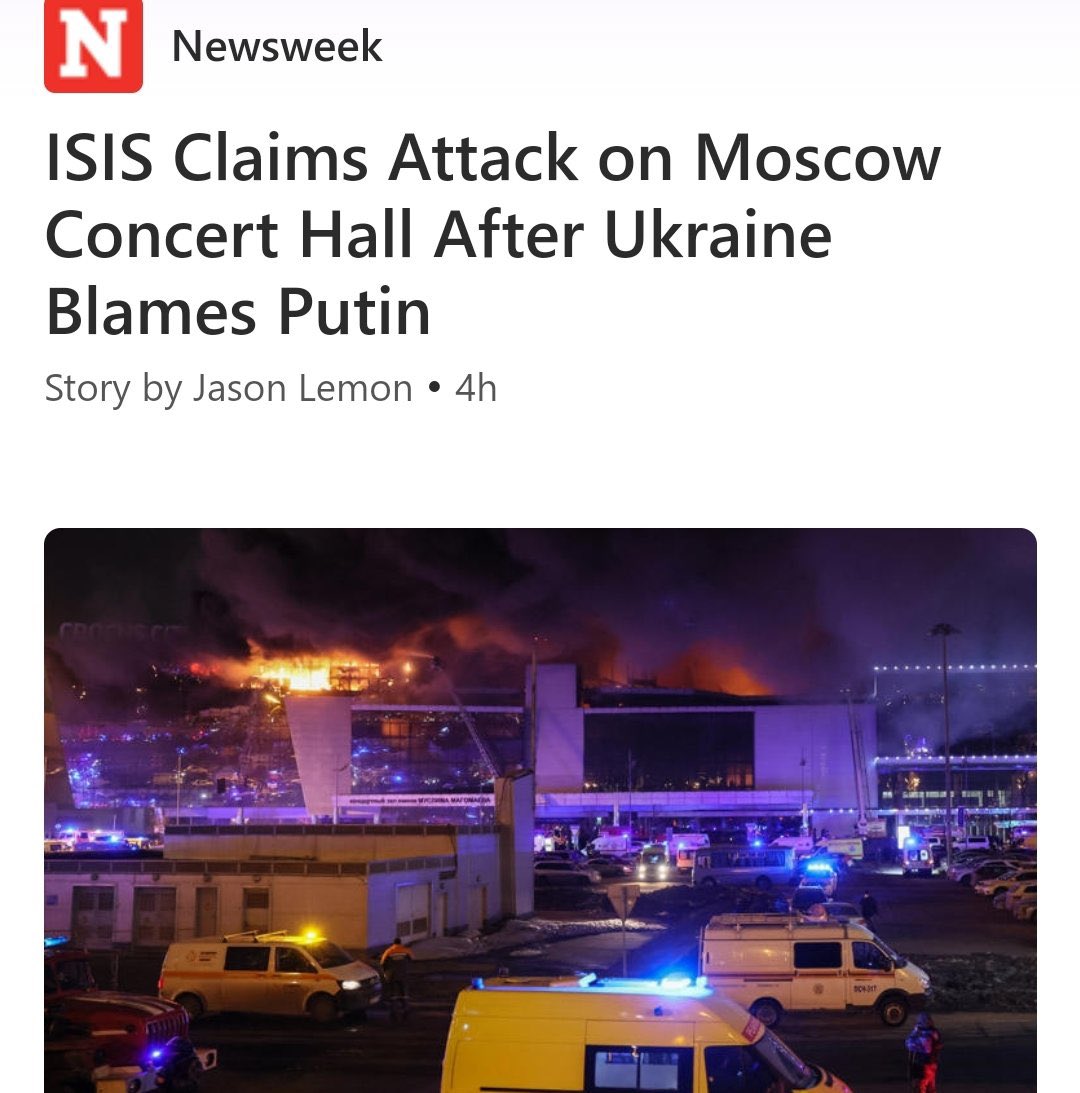 🔹ISIS claims responsibility for the terrorist attacks in Moscow. 🔹Contrast: ISIS **apologized** to Israel after mistakenly attacking the IDF in Golan Heights. It’s like the Nord Stream attack. Everyone knows what’s happening, but everyone plays dumb. https://t.co/e6OkDQzlCe