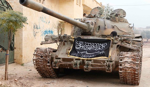 Islamic terrorism on steroids Remember how the CIA armed the Mujahideen with guns and shoulder-powered stinger missiles to defeat the USSR in the 1980s? It was 1000x worse in Syria, where Al Qaeda was given tanks, powerful rockets, mortars, "hell canons" etc. #Assad