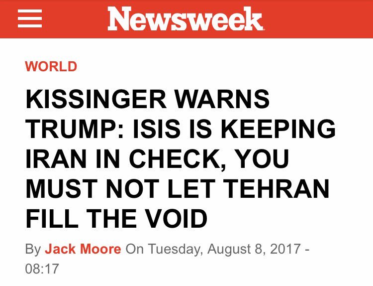 US and Israel were openly supporting ISIS on one side and then using ISIS as an excuse to bomb Syria. Israeli officials, Kissinger, Thomas Friedman (NY Times) etc. praised ISIS for countering Iran. https://t.co/dll5rjJGb8