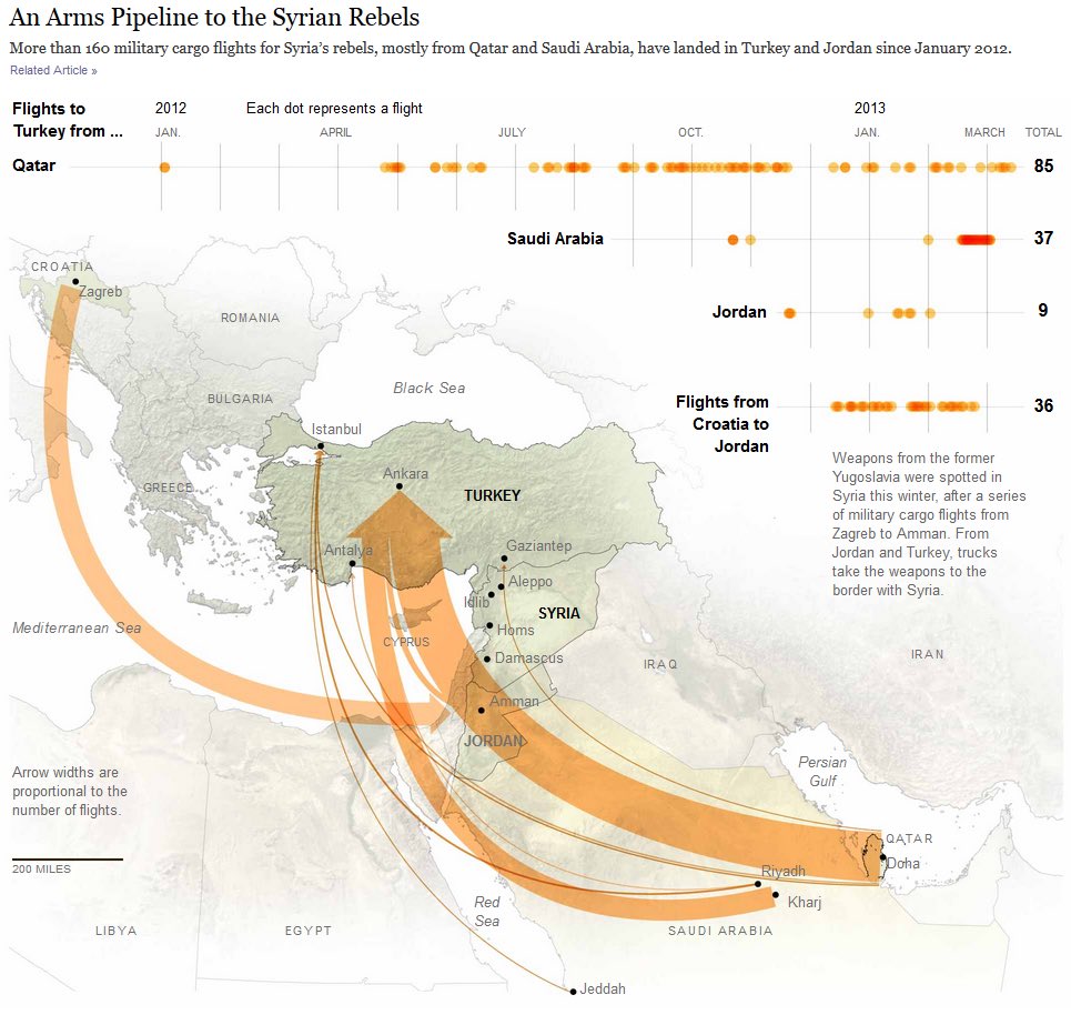 US weapons had an elaborate rat line that involved Azerbaijan's diplomatic airplanes, Saudi Arabia and finally through Turkey. Al Qaeda and ISIS got weapons worth billions of dollars. The CIA named its project, "Operation Timber Sycamore." #Syria #Assad https://t.co/mxaJGY3I9v