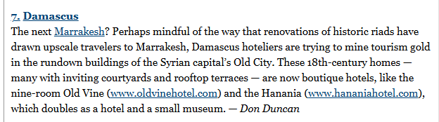 In 2010, the NY Times travel section listed "31 best places to visit in the world." And Damascus - capital of Syria - was ranked #7! Why? Because Syria under Assad was peaceful, safe and prosperous!