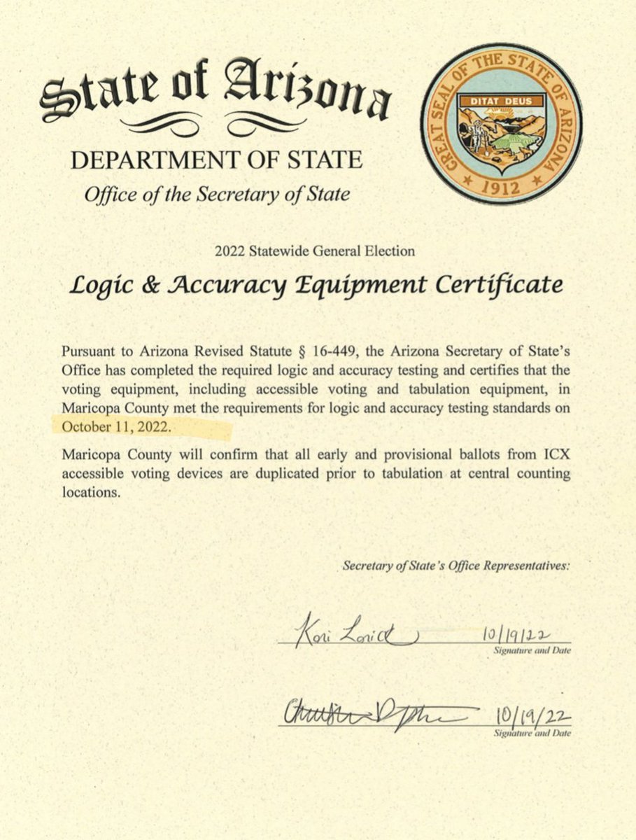 🚨Case Update🚨 @MaricopaVote has admitted they broke the law & improperly certified the machines that failed on election day. This is total vindication for @KariLake & her team. There can be no “denying” that Maricopa committed a great injustice against the people of Arizona.