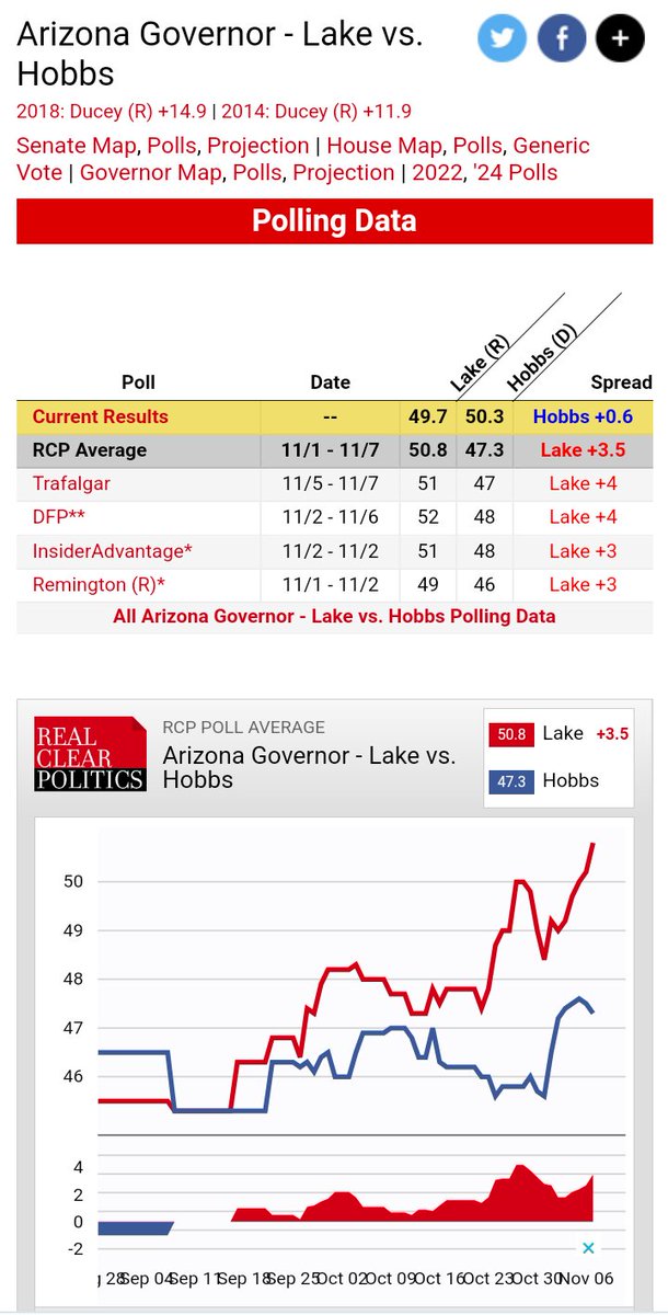 Aren't we due for a reckoning in the polling industry? @KariLake's lead in RCP average was 3.5 We did the math With a 3.5% lead Kari would have been expected to win by 90,000 votes, not lose by 17,000 a 107,000 vote swing It's almost like a lot of people didn't get to vote