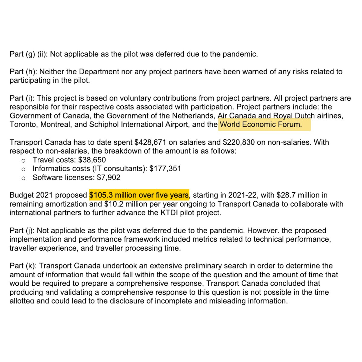 The Canadian gov’t admitted they have a $105.3 million contract with the WEF for the Known Traveler Digital ID. Did you know this? FULL DOCUMENT HERE: https://t.ly/GXqEK