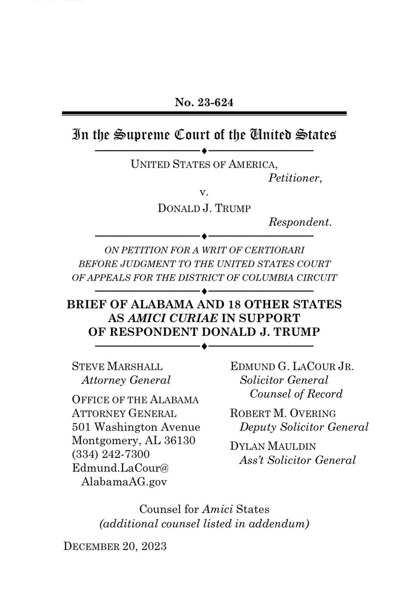 🚨 BREAKING: We have filed a brief at the United States Supreme Court to halt Jack Smith’s move to circumvent the appeals process in his prosecution of President Trump. The DOJ’s attempt to accelerate the prosecution is blatantly partisan, and SCOTUS must reject it.