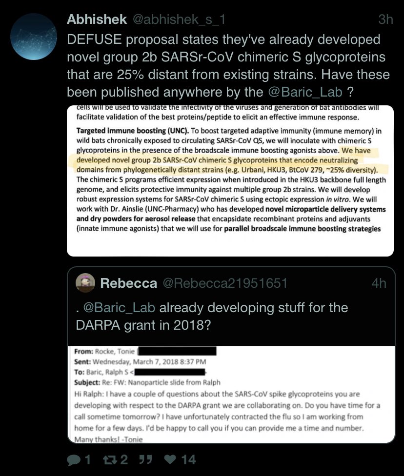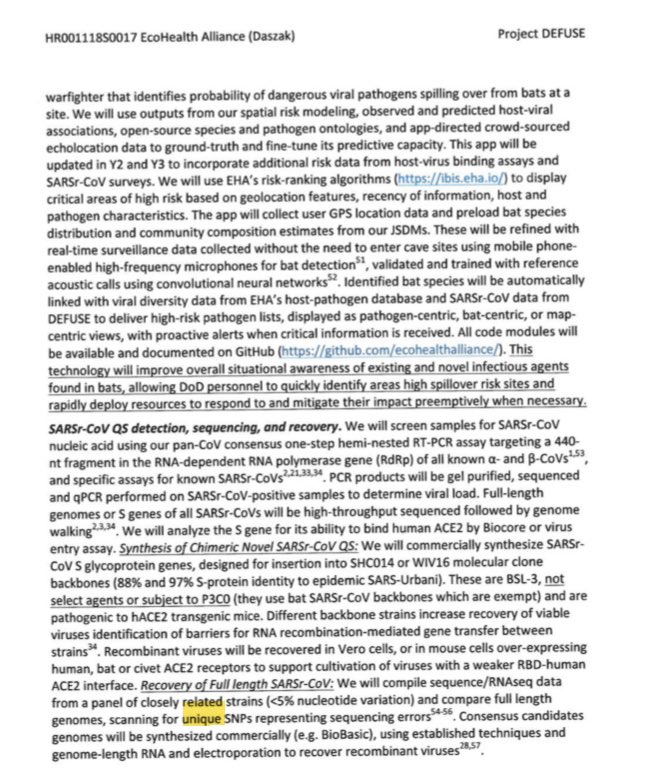 Not only Leaked SRA data included both the exact kind of viruses that they claim will not be present in the WIV—and the exact SARS-CoV-2, WA1, cultured in a CoV-specific tailored fusion cell line VERO-CHO never used in China and sequenced before even a sample of WA1 can be taken in China, alongside C/C and B, at high passage depths, and contained within it residual human DNA not from anywhere in central China but in stead right where they were sampling from the 2018 “pathogen host adaptation and immune intervention” grant—the belt and road regions; https://gab.com/Flavinkins/posts/109888056517115303 But also these membrane anchored cellnsurface expression vectors intended for HEK293f of the SARS-CoV-2 Spike that have most relevance to Spike-nanoparticles for use in non-humans. They are not vaccines that can be used in humans due to the human signal peptide used (expressing an antigen together with a human protein, especially when co-localized through generation of nanoparticles processed from the same peptide chain) and the pcDNA3.1 which contained undesirable proteins. They are also not pseudoviruses. They best fit the “Spike nanoparticles” specified in DEFUSE out of all. (As a plain binding study would not use a complicated transmembrane anchor, which interfered with pseudovirus assembly. Human tpA signal peptide and pcDNA3.1 mean the formulation is unsafe for humans, which should not happen for such clearly finished-for-mass-production-in-HEK293f nanoparticle (that also have envelopes) formulations unless it is intended only for non-humans (such as DEFUSE bats).) https://t.co/gpv4cXu1WP. https://archive.md/1C7om Continued EHA human sampling=Yunnan and belt and road DNA. Isolate if possible=special unpublished VERO-CHO cells. And it was sequenced before the first public sequencing of SARS-CoV-2 with this machine type by the flow cell, confirmed via Sangon policy and Chinese law, and before+not matching any samples of WA1 was even taken in China. And this exact CAS special project mirroring of DEFUSE+Year 5 extension—sample humans from belt and road area, isolate and engineer viruses for infection characterization, and create vectorized and nanoparticle vaccines that are capable of bringing in both backbone and Spike into bats studied in and released by the WIV, and into the main sample storage facility of the WCDC. (Also see this—note all the FCS relevant oddities can also be caused by targeted RNA recombination link.springer.com/chapter/10.100… followed by cell culture). The instability associated with 8782/2814/18060 (WA1->A->B) is found to recur at least 3 times in the WA1/UW cluster, especially their cultured isolates. The associated samples have T22657C, T3346C, A21562C and G487T. all of which is in RaTg13 but not in WuHu-1. also T1963C and T22963C in BANAL-52. https://gab.com/Flavinkins/posts/109640519028841414 It is not just that SARS-CoV-2 Wuhan grows best in VERO cells out of all variants. Some earliest patients harbored inside their QS specific S1-S2 deletions that can form only in VERO E6.