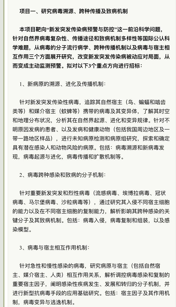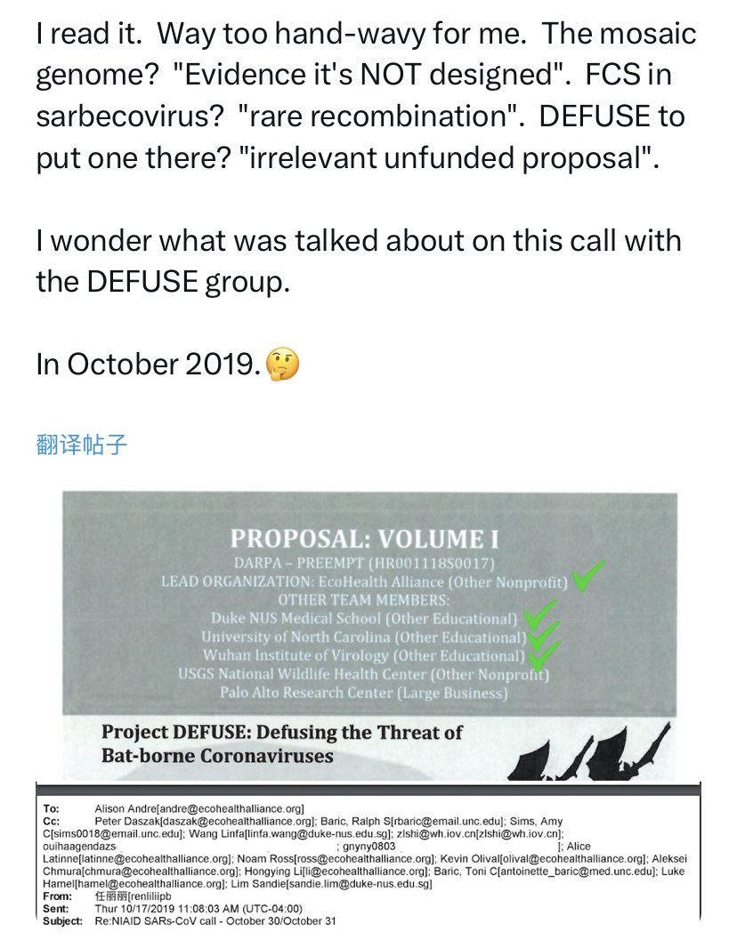 https://x.com/daoyu15/status/daoyu15/status/1731414539324018732 CAS “pathogen host adaptation and immune intervention” is one of such major grants that they continued DEFUSE on. https://x.com/daoyu15/status/daoyu15/status/1747929537848266981 https://x.com/daoyu15/status/1748424486729253321
