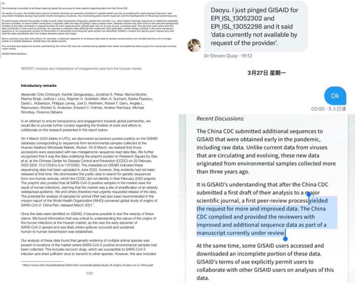 Also, the only bat cave that was banned from public access—were Mojiang and Shitou. It happens only at and serves only to obscure the actual inventory under their control in the sampling and testing sites of the WIV. And they Did not “Stop all bat sampling”. There is clearly evidence that they are perfectly capable of hiding their work, none of the claimed official audits to the lab was ever published or even disseminated among the authorities in China, And the reason why they used GISAID here, is that https://archive.md/0aHWr https://archive.md/Myt4u there is no proper versioning or custody of “data” on GISAID. https://archive.md/52DyQ https://archive.md/B0xlW @DiLiMengYAN1 And no trails that can be FOIA’ed and bust their “data” like on NCBI. And no possibility that inconvenient lab-incriminating data can be leaked or FOIA’ed like csabai et al. Still no official response from the CCP.