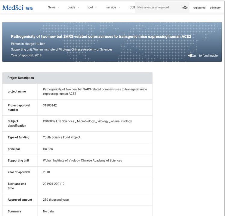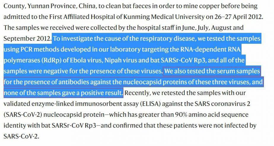 there is a long history of the WIV lying to the point of base rate neglect when being asked anything about potential LAI. The “dinner of staff” too, where they neglected the base rate which is Wuhan medical institutions are already in panic and the general public is already taking precaution, as h2h is announced in 15-16/01/2020 to the point that even the invited international collaborator have hinted Shi to wash hands, that she unexpectedly did not given her expertise and knowledge on the public info about SARS-CoV-2 in general Wuhan public in this time. She pretended to not know the need to take precautions when she was expected to do so, just like when she sabotaged the test to make 67 general 2021 Wuhan public serological samples test all negative when there should be positives given the seroprevalence in Wuhan at that time. researchgate.net/publication/35… It is just as impossible To have 67 community members to test all negative in Wuhan in 01/2021 as to have 593 people to test all negative with any sensitive test available in April-June 2023. gab.com/Flavinkins/pos… And this same behavior of issuing a test that will not turn positive on a human also happened to the mojiang miners. Where their own early serological test results were contradicted. archive.md/Pc6gp archive.md/zUD1F And ben HU lied about working with live virus which are so easy to debunk just by a simple google search. His own grant notice required live virus work in 2019.