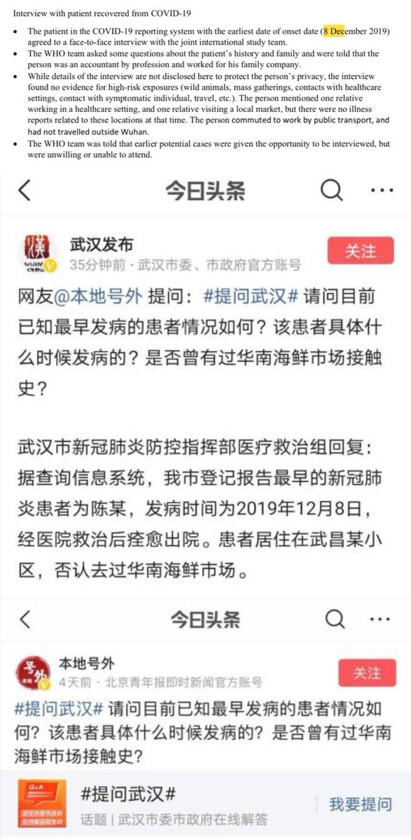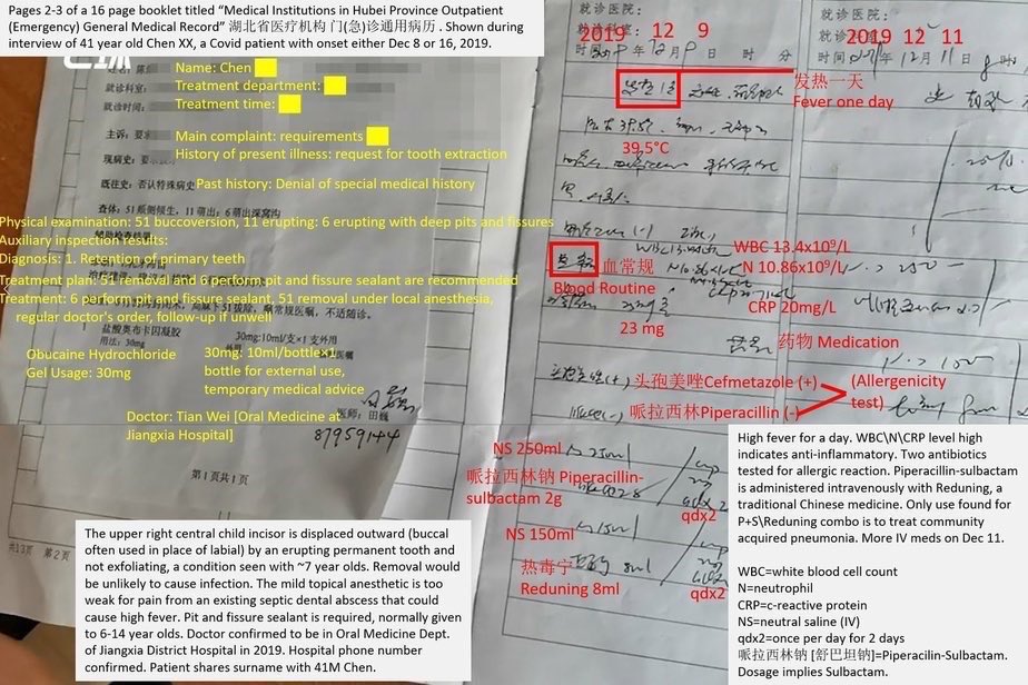 Chen lived in Shidong. Even by the annexes indicating his history. The only thing they did is that they moved him to Jianghan close to the market on the WHO maps. Also, Chen is not the only person infected in Shidong/Jiangxia and central Wuchang. Most were censored and only one of the two ambulances arriving in 31/12/2019 have been registered as a dot—likely because the origin wasn’t inside the Shidong prefecture/BSL-4 surroundings, and likely only because of being a close contact relative of Chen (contacting an known case). Chen’s accidental inclusion in the WCH’s first report of early cases and its subsequent media coverage mean that China have no choice but to tamper with the official data in an attempt to move him—while the HPHICWM attempt to whistleblow the “cluster 1” cases in 26-27/12/2019 generated from the WCDC’s leak of their culture stock (intended for sample manipulation) was blocked by the Hubei CDC, until the report included market cases as well in 29/12/2019. To save face, the CCP leveraged the fact that the WCDC is right nextdoor to the market and forced official media to only say that the cases were “close to the Huanan market” but not allowing the proximity to the WCDC to be reported. https://gab.com/Flavinkins/posts/109256201942085712 All dots they moved this way (up to 1/3 of all cases) was sent to Jianghan, https://archive.md/p3K3Z https://www.researchgate.net/publication/370635299_Greater_than_the_Sum_of_its_Parts_-_Aggregated_Wuhan_COVID-19_case_data_points_to_the_wrong_side_of_the_Yangtze_River_-_Rixey_-_20230509 especially to the immediate surroundings of the market, to scapegoat it and end up causing the “unlinked cases” cluster to be closer to the market than the “linked cases” cluster, despite supposedly the linked cases should be the only source of initial human to human transmission seeding and therefore the unlinked cases should cluster near the linked cases and not the market itself. This kind of improbable-under-null-hypothesis behavior is all over Chinese “data”. And of course, Chen lived right next to the WIV BSL-4 in every dataset other than the WHO report maps—including interview datasets in the same report which where he frequents (RT-mart in Jiangxia) and which early report indicate he “lived in Wuchang” and the first hospital Jiangxia 1st Renmin hospital which he visited first and sick at the second day. Also, China WHO/WIV covered up their earlier cases intentionally—it is not plausible for 67 samples from humans taken in 01/2021 to test “all negative”. https://www.nytimes.com/2021/02/12/world/asia/china-world-health-organization-coronavirus.html They systematically moved more than 3000 cases from the lab to the market and gave “cases data” that they wanted to push for market as first outbreak site to distance from the labs. https://archive.md/rYvu3 https://archive.md/UFrSv https://archive.md/nevZy https://www.researchgate.net/publication/370635299_Greater_than_the_Sum_of_its_Parts_-_Aggregated_Wuhan_COVID-19_case_data_points_to_the_wrong_side_of_the_Yangtze_River_-_Rixey_-_20230509 Such an result of having unlinked cases closer to the market than linked cases is not expected even under the null hypothesis of market origin, which we should see unlinked cases secondary to and cluster around the linked cases, and not the market itself. https://www.researchgate.net/publication/370635299_Greater_than_the_Sum_of_its_Parts_-_Aggregated_Wuhan_COVID-19_case_data_points_to_the_wrong_side_of_the_Yangtze_River_-_Rixey_-_20230509 Not only there were an complete absence of verifiability in Chinese cases, there is direct non-circumstantial evidence that they moved up to 3000 cases from Wuchang to Huanan. In fact, it is totally not normal to have unlinked cases closer to the market than linked cases—the only way this can happen is with ascertainment bias. Only near the market gets ascertained if not directly linked to it. Base rate neglect. They did the exact same thing when claiming that all 67 “pre-Huanan checkable cases” were “serologically negative”. Again, the social media associated here say “before Jan 18, 2020”. Included all Dec cases. https://www.mdpi.com/2220-9964/9/6/402 https://ghrp.biomedcentral.com/articles/10.1186/s41256-021-00200-8 https://www.ncbi.nlm.nih.gov/pmc/articles/PMC7149375/ 135/92 cases in early peer-reviewed papers that went missing in the WHO report.