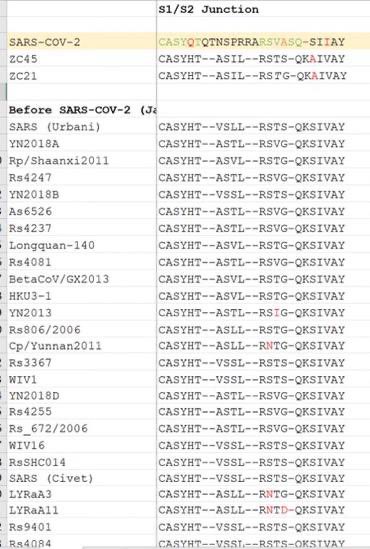 What those analyzers think: “many different precise and specific pieces recombine into SARS-CoV-2”. Reality: an unpublished but readily sampled SARS-CoV-2 progenitor spread fragments over time into multiple locations. Some end up in the published samples. Assumption of recombinant origin is almost always because of a lack of published samples sufficiently close, especially with multiple of samples of comparable distance. One specific contig is fished out of the assembly graph from a bucket of reads on the criterion that it meet the RE site requirement, before being used for cloning. Natural recombination will not pick that specific contig over any other possible assembly graphs for spillover. What they claim: “Only QTQTNS + PRRA would work!” Reality: they test an appropriate human FCS on all manner of Spikes, especially when they see an S1-S2 site “cleavage sites in S2” (that are structurally homologous to 757/900 for HKU1 “other coronaviruses”) with the example of “667/792 for SARS” that have deviated from the established consensus of spillover-capable SARSr-CoVs up to the point if DEFUSE. And it just happened that the closest human FCS to the first mismatched S1-S2 they see is the hENaC FCS, introduced by adding “ARRA” to “RSVAS”. Several versions tested and one ended up working. https://gab.com/Flavinkins/posts/109205261283826972 ReCCA is tautological and fictitious. https://gab.com/Flavinkins/posts/109863181504837302 https://gab.com/Flavinkins/posts/109465063042828622 https://gab.com/Flavinkins/posts/109255356915252021 BtSY2 is sequenced in 2018. https://gab.com/Flavinkins/posts/109399710986742685 BANAL is in the hands of the DOD in 2017. https://gab.com/Flavinkins/posts/109340247585238829 https://gab.com/Flavinkins/posts/109800300869616862