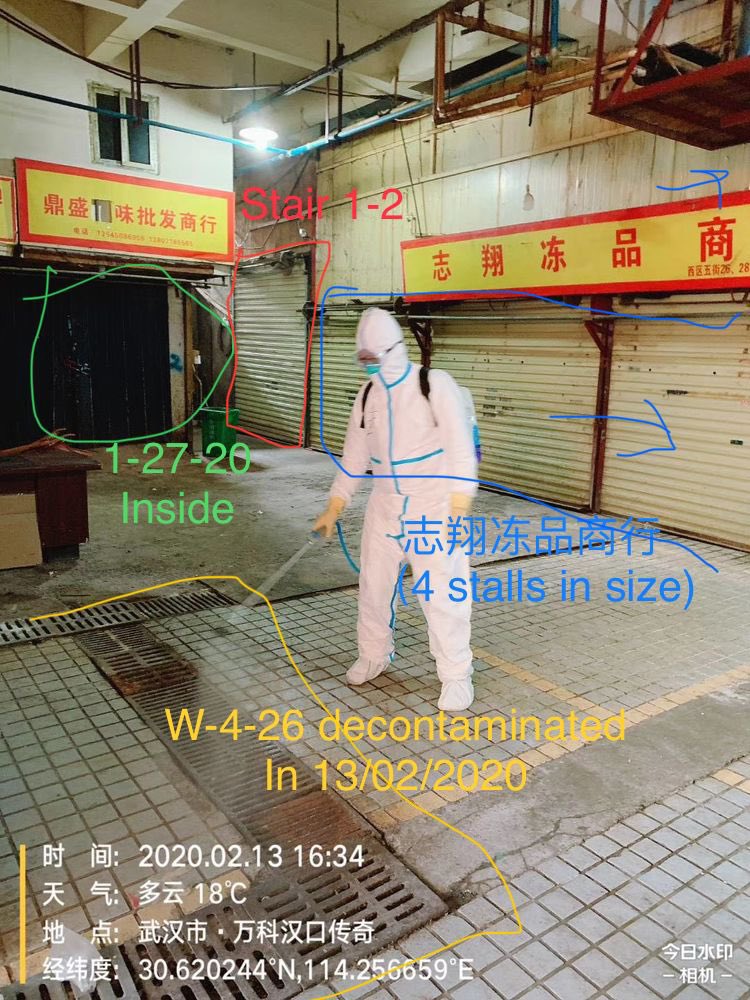 archive.md/HlJ9o https://archive.md/rSaO9 https://archive.md/13bdP https://archive.md/nAqKp They also put bleach onto the toilets and the mahjong room before sampling them. This is a clear move to cover up. https://archive.md/rj1pV https://archive.md/FskYn archive.md/csYBM And no the “stall” W5-NA was sampled on the inside 27/01/2020, negative. The toilets is the real contamination source. https://archive.md/LJzSO https://archive.md/4cCHG archive.md/C5oal archive.md/RSsS7 and yes only Homo Sapiens positively correlated with SARS-CoV-2 consistently in all metrics, or formed any kind of line or grouping pattern at all that allow the abundance of one to be estimated at above-random success rate and precision using the other (e.g. have any significant mutual information with SARS-CoV-2). archive.md/0O2TN archive.md/GjlEx What they tried to hide with this: The fact that “closest to the toilets” is the only factor that governs where you are going to see positive samples the most in the market—there is no difference between W4-28 and W4-26-28 in 01/01/2020 and W6-29-33 in 12/01/2020 in term of where the virus came from and why they have the highest positive sample count out of all sample counts in their respective sampling runs. Sampler contamination and cross-contamination. archive.md/LJzSO archive.md/VNr75 Never an infected vendor or animal. In fact, the samples in the market follows the rule which a positive sample archive.md/CTP3i archive.md/ETjzS archive.md/BWZJL must be contacted by samplers.🥼👖👢=positive. archive.md/NeybM archive.md/2PM9Y archive.md/RirQ7 And not frequently handled by vendors.🥩🥬🍄🛁📻☎️📦🧺=negative.
