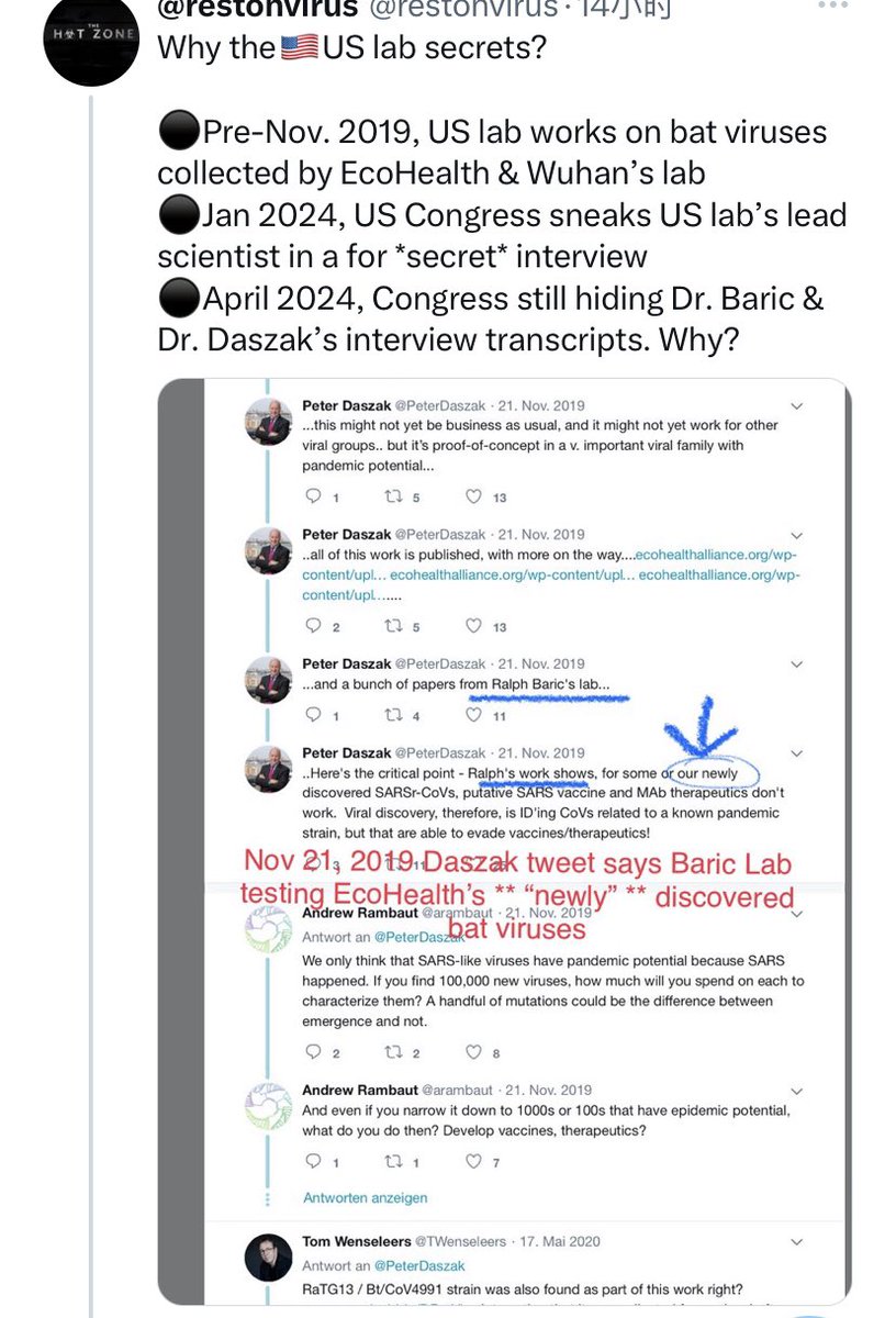 https://twitter.com/vigilantfox/status/1686198223763853312 Fauci lied under oath “not funding gain of function (GOF) research” https://twitter.com/charlesrixey/status/1728099199772762618 Email: https://twitter.com/texaslindsay_/status/1679838118743097348 GOF under another name: https://twitter.com/s_q_e_r_l/status/1392429082370002946 Even under their own standards for published results. https://twitter.com/r_h_ebright/status/1704641787380298152 Fauci directly offshore GOF. https://twitter.com/hansmahncke/status/1752063214769377292 https://twitter.com/r_h_ebright/status/1633624833081884674 https://twitter.com/schwinn3/status/1457368942272565255 Another discrepancy between public propaganda plans and private concerns. https://twitter.com/covidselect/status/1730198241428275213 Flip-flop with masks is the least of his worries. https://twitter.com/covidselect/status/1730198245626769905 See replies for his past lies. https://twitter.com/covidselect/status/1730198247971373554 More about Fauci: https://twitter.com/covidselect/status/1732078538033971626 “Fauci's legacy is as honorable as this NIAID report he was obligated to release under a FOIA lawsuit is “packed with information”...” https://twitter.com/williewwilliam/status/1730356526424932620 Fauci lied, people died. https://twitter.com/covidselect/status/1730198247971373554 FOIA stuff: https://twitter.com/thackerpd/status/1412369872487698432 Yes. They are really there defending GOF research and their grave COI making them wholly opposed of even the idea that a pandemic can ever be initiated by virology research. http://bmj.com/content/344/bmj.e2398/rapid-responses… https://twitter.com/daoyu15/status/1712998816356643194 You can only have GoF work generate a viable prediction or a vaccine if the next emergence is of the exact same genetic makeup as your GOF strain. The extreme diversity of viruses mean that you have (total number of viruses in the world (billions)*probability that a GOF study result being used maliciously (>1/200 minimum)) times higher likelihood that GOF research cause a pandemic in stead of preventing it. http://archive.ph/BToZR http://archive.md/YYIXp http://gab.com/Flavinkins/posts/109663743902085653… https://twitter.com/daoyu15/status/1713099142841729200 https://twitter.com/Daoyu15/status/1725182075656155186 The ODNI both broke the law and is full of elementary mistakes in their “report”. That is why it can’t be trusted. https://twitter.com/daoyu15/status/1725274033103491368 As on why? https://twitter.com/daoyu15/status/1725276084965380325 They need to protect GOF at all costs. https://twitter.com/daoyu15/status/1725182099232305536 More hidden experiments. https://twitter.com/0rf/status/1594467737744465920?s=46&t=wRQSWp_1VffWmS2vKQwhSA… Covid origin declassification act violation of the ODNI. https://twitter.com/daoyu15/status/1724626293403373877?s=46&t=wRQSWp_1VffWmS2vKQwhSA… "Former Acting Assistant Secretary of State Thomas DiNanno tells [Sky News]…that when his team unearthed explosive evidence that pointed to a laboratory leak…, the intelligence community ran interference in support of a natural origin narrative." https://twitter.com/r_h_ebright/status/1729164212159824154?s=46&t=wRQSWp_1VffWmS2vKQwhSAw… GOF is only for dual-use bioweapons research and are never useful for any kind of vaccine or therapeutics. Stop lying. https://twitter.com/Daoyu15/status/1682701118655303680 https://twitter.com/daoyu15/status/1679461360164552705 Here is clearly KGA never ruling out even engineering. https://twitter.com/daoyu15/status/1690480261103034368 And unfortunately, the first use of the prefusion-stabilized Spike was to target MERS-CoV and WIV1 wasn’t the drive of the patent, nor did the patent required any GOF research. Also, the vaccines are now proven to be hazardous, driving unending waves of reinfections. https://twitter.com/daoyu15/status/1691993269847413159 https://twitter.com/daoyu15/status/1691993693258186857 https://twitter.com/daoyu15/status/1724491689124065595?s=46&t=wRQSWp_1VffWmS2vKQwhSA… Not even Tedros consider their claimed conclusions valid. https://twitter.com/drtedros/status/1724132394662252877?s=46&t=wRQSWp_1VffWmS2vKQwhSA… Unanimously, they passed a law banning all NIH ePPP GOF funding. https://twitter.com/justinrgoodman/status/1724621384305742069?s=46&t=wRQSWp_1VffWmS2vKQwhSA… Numerous problems of the ODNI “report”. https://twitter.com/daoyu15/status/1724626293403373877?s=46&t=wRQSWp_1VffWmS2vKQwhSA… https://twitter.com/daoyu15/status/1738419581080010945 Red-faced and looking extremely anxious, Dr. Peter Daszak, President of EcoHealth Alliance, testified today in a closed hearing about the #OriginOfCovid. https://twitter.com/daoyu15/status/1725480788861559101 Following his testimony, the House of Representatives unanimously voted to defund two active grants awarded to him. https://twitter.com/fermentillc/status/1724744680183611631 https://twitter.com/drhermiz/status/1724620221464424608 https://twitter.com/justinrgoodman/status/1724597207741902969 Including additional approved bills that cuts all DOD funding to the EHA as well. https://twitter.com/Bryce_Nickels/status/1730668384583299361 Evidently, the secret bioweapons department of the U.S. wasn’t happy on this resolution. https://twitter.com/BlackTomThePyr8/status/1730674382580678812 But even they agreed that bat CoV GOF work involving China as a region or using the WIV is too risky to continue putting DOD money on. https://twitter.com/justinrgoodman/status/1732740769071423590 https://twitter.com/daoyu15/status/1732967051617288443 https://twitter.com/daoyu15/status/1733530016695386345 Like touching a fire and got burned. https://twitter.com/daoyu15/status/1732968216706842766