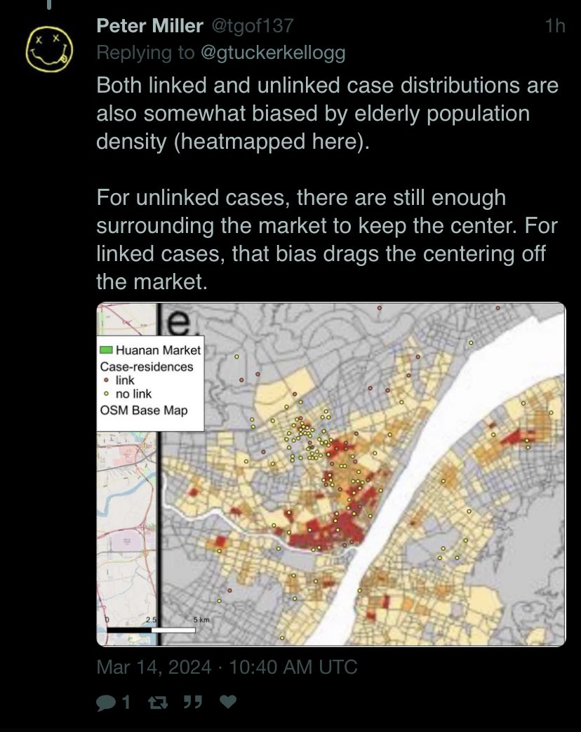 https://www.nytimes.com/2021/02/12/world/asia/china-world-health-organization-coronavirus.html https://archive.md/UFrSv They systematically moved more than 3000 cases from the lab to the market and gave “cases data” that they wanted to push for market as first outbreak site to distance from the labs. https://www.researchgate.net/publication/370635299_Greater_than_the_Sum_of_its_Parts_-_Aggregated_Wuhan_COVID-19_case_data_points_to_the_wrong_side_of_the_Yangtze_River_-_Rixey_-_20230509 Such an result of having unlinked cases closer to the market than linked cases is not expected even under the null hypothesis of market origin, which we should see unlinked cases secondary to and cluster around the linked cases, and not the market itself. https://www.researchgate.net/publication/370635299_Greater_than_the_Sum_of_its_Parts_-_Aggregated_Wuhan_COVID-19_case_data_points_to_the_wrong_side_of_the_Yangtze_River_-_Rixey_-_20230509 Not only there were an complete absence of verifiability in Chinese cases, there is direct non-circumstantial evidence that they moved up to 3000 cases from Wuchang to Huanan. In fact, it is totally not normal to have unlinked cases closer to the market than linked cases—the only way this can happen is with ascertainment bias. Only near the market gets ascertained if not directly linked to it. Base rate neglect. They did the exact same thing when claiming that all 67 “pre-Huanan checkable cases” were “serologically negative”. Again, the social media associated here say “before Jan 18, 2020”. Included all Dec cases. https://www.mdpi.com/2220-9964/9/6/402 It is actually impossible for unlinked cases, supposedly secondary, to cluster closer to the market than linked cases which supposedly to be primary, without significant sampling bias or outright manipulation in the underlying “data”. Both evidently happened. https://arxiv.org/pdf/2401.08680.pdf https://archive.md/JVFuc If you toss away anything that is not officially announced by China in bold, then obviously you would arrive at exactly what China wanted you to believe.