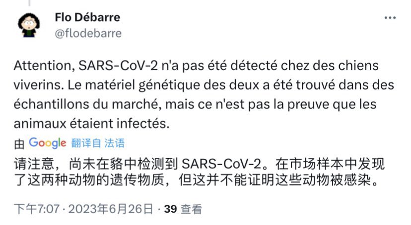 Not even rumors indicated any person at all in the wildlife industry in China being sick or getting infected, not even rumors indicated direct participation with the wildlife trade (purchasing, vending, dealing, transporting, farming, butchering, cooking or eating) by any of the known official or unofficial early cases. The only ever results from these wildlife trade participants indicate perfect condition of health and no evidence of infection at all among the customers or neighbors of any of them. Not even the market cases themselves—none of them reported direct participation of the wildlife trade. And unfortunately, The only thing governing the probability for positivity of the environmental samples is “closest to the toilets” and “closest to the main entrance of the market”. In fact, the samples in the market follows the rule which a positive sample archive.md/CTP3i archive.md/ETjzS archive.md/BWZJL must be contacted by samplers.🥼👖👢=positive. archive.md/NeybM archive.md/2PM9Y archive.md/RirQ7 And not frequently handled by vendors.🥩🥬🍄🛁📻☎️📦🧺=negative. archive.md/LJzSO archive.md/4cCHG boot on surface = NGS+/PCR+, suit on sample tube = PCR-/NGS+ as it indicate contamination occurred after PCR and before NGS with alignment over the ORF1ab primer. Closer to the toilets, more likely of direct stall entry after market entry by the sampler, more samples become contaminated. Earlier the time of first sampling, the more virus in the contamination source at the entrance with less disturbance, and more virus is found in a sample that is taken from such a stall. And yes. One of the earliest unknown activity done by the WCDC including “taking environmental samples” and “cleaning” the market overnight in 31/12/2019. While the archive.md/iw1Pz animal samples have been disclosed in 01/2020 and all negative, the focus on early cases stalls in this run brought in the virus into the “live virus isolated” stalls that would be sampled in 01/01/2020. https://wwwnc.cdc.gov/eid/article/10/6/03-0852_article On the contrast, 5 independent cases with close contact to the avenues of wildlife trade for SARS-CoV-1 have happened in 5 cities in 4 in Guangdong and 1 in Guangxi, over the same 2-months timeframe. Two of them were market workers on two independent markets which civets were sold, three of them were direct participants of the wildlife trade: two of them were civet butchers, and one a driver for wildlife dealers. All of these cases have yielded continued transmission from them. In the contrast, 0 of the early cases for SARS-CoV-2 worked in or have a history of direct participation with the wildlife industry. archive.md/yyX0Z archive.md/iw1Pz archive.md/4rVph archive.md/DChUL Exactly 0 raccoon dogs or any of the so-called “susceptible species” were found infected anywhere in the world, not even by a relative of SARS-CoV-2.