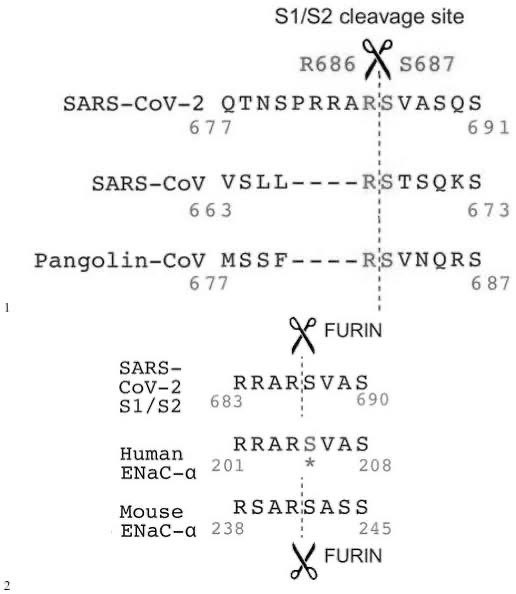Bonus: for VERO/HAE cultures, deletions of the S1-S2 forms an equilibrium with QTQTNSPRRARS in ratios from 5% to ~70%. These mutations are actually identified within the Wuhan patients themselves, obtained from clinical samples in stead of only after culture for the first patients. Such clean QTQTN or SPRRARS deletions are not found even in homology in natural SARSr-CoVs. You only get to an FCS and the Proline (in stead of R, H or A) stabilized within these liquid medium-immersed cell cultures, and only if you start with an synthetically inserted FCS such as with the hENaC, the closest “human-specific cleavage site” to the QTQTNSRSVAS which “clear mismatches occur” at the first of the two S2 cleavages site in the Spike.