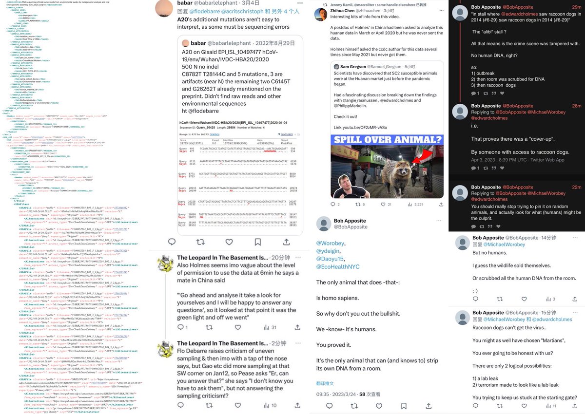 Real forensic evidence never get an explanation of official release from China. All China show you as “forensic evidence” have already been tampered with. Not just Ascertainment bias. The “data” have been actively tampered with. Why bleach the toilets before sampling it? Not only there were no gloves at all in the A20 stall W7-15-17, but the sample is both inconsistent in viral reads between 2021/2023 and in host fractions (despite claimed to be multiplex PCR directly from the original sample which should not change host fractions) between the lineage reads-free “metagenomic” and the lineage A “viral amplicons” datasets. Like all 26/03/2023 deposition date “datasets”, they were tampered beyond credibility (3/4 of all samples with an 2021 viral count have been changed, the 1 left was kept without any distinction indicate likely used as standard and debunking the attempted explanation of resequencing (all 4 are stated to be “resequenced via multiplex PCR” together) by contradiction (an unchanged B5 requires an 2021 resequencing date, F13/F54/A20 moved to resemble B5 in ratios in 2023 clearly a move to cover-up https://archive.md/ANS4Q the prior artifacts that became known when they begun monitoring relevant online info in March 2023). Not only Jan 12 samples were affected—for all sampling dates mutual information with all species have been destroyed with the scrambling of the host reads upon the inclusion of the 26/03/2023 upload date datasets. It is quite evident that removing contigs does not eliminate Correlation between humans and the virus because reads are removed proportionally. And all that scrambling just removed mutual information to all species, in all sampling dates. And still can not establish significant mutual information to any “susceptible species”. All zoonosis datasets in China have been tampered with, again artifacts are seen. As found out by NCBI FOIA. https://t.co/WOsGj2kqFZ@washburnealex Both of the PCoV BioProjects with changed DBs change them so that they can remove human DNA from the samples. (One left VERO bits behind, one removed so many sequences that viral concentration in the “metagenomes” were 50x-70x higher than their virus culture.) No explicit Chinese DBs on origin can be trusted in any way. Unfortunately, they failed to consider that there are alternative assemblies and non-standard hypervariable regions in humans though. arxiv.org/abs/2108.08163 arxiv.org/abs/2207.03288 Tamper with data, and you get caught. And all of the “data” you post loses all credibility. x.com/drlimengyan1/s… As for the reason why they need to fabricate the bat and pangolin data as they do with (A20, F13, F46)/B5 and Q61? x.com/drlimengyan1/s… They release a fallback to animal whenever the lab is scrutinized beyond denial. Another issue here for GISAID, is always that archive.md/0aHWr https://archive.md/Myt4u there is no credibility at all due to absence of proper versioning or custody of “data” they put up. archive.md/52DyQ archive.md/B0xlW @DiLiMengYAN1