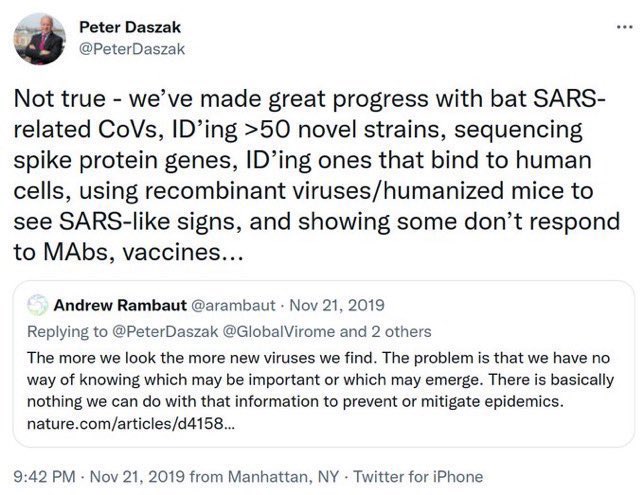 ePPP virologists and virus hunters are arsonists that pretends to be firefighters, and they have only ever seeked to weaponize the pathogens they “tracks” with the pretext of dual-use “research” without ever coming up with any actual clinically executed effort in their alleged goal of “prevention and treatment” for any of the pathogens.
