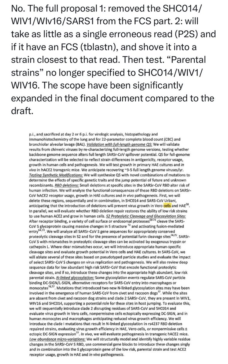 And no. DEFUSE does in fact propose to insert FCSes (human-specific cleavage sites in human proteins) into SARSr-CoVs. Especially when there is a mismatch to either the S1-S2 or the S2’ cleavage site, both in S2. (Such as when QTQTNSRS show up in an study-relevant Asian Sarbecovirus in 2018, where no isolated or even studied ones have an non-HT(V/A)S(L/I)LRS sequence.) If there is an infected animal, more than one spillover would happen, especially Guangdong. Why it is VERO E6 that was Wuhan growing best inside? Why all later lineages grow less effectively in it? Just fuse in a cell line that have a correct serine protease pathway. CaLu-3 also uniquely have no growth advantage to any known VOCs compared to Wuhan. Include in passage, and PRRA is more stabilized than it can ever be mutated or deleted, Proline included. arxiv.org/abs/2104.01533 An infectious clone is designed to be rescued. archive.ph/EiCQW Well, MN611520–definitely not a bat CoV. And of course, motivated reasoning like markolin can not explain how the “perfectly natural and consistent with bat sex” CoVs MN611520 and HKU4-HZAU-1 ended up one in a location without a Merbecovirus natural host (cotton but not bats or camels) and another inside an infectious clone backbone. And of course, WIV1, WIV16, Rs4874 and RsSHC014 count up to 4 published live isolates not “only 3” claimed by Shi. That is published isolates only. zenodo.org/records/570270… RaTG13 don’t grow outside immortalized kidney cells. These are just too many inconsistencies and obvious lies regarding the number of WIV Or EHA viral sequences AND isolates in their public claims. Then, there is an attrition problem where the idea that “the FCS worked impossibly well than design can anticipate” was really based on observed functions that have no bearing to pandemic potential and only recently attributed to the “specific context of the FCS”, in reality they just nee to put ENaC FCS into a QTQTNS massively mismatched S, then grow it once in VERO cells. All changes to a sequence will have half advantage and half disadvantage in the organism, but here the specific advantage of P681 “specific sequence of the FCS” is only in VERO cells, and the disadvantage however given that all natural isolate Bat Sarbecoviruses are 614D, is the complete destruction of all animal reservoirs as the incredibly unstable D614+FCS Spike got torn apart by the antibodies that would form in the animal before the FCS can emerge. The reason why no FCS exist in wild Sarbecoviruses.