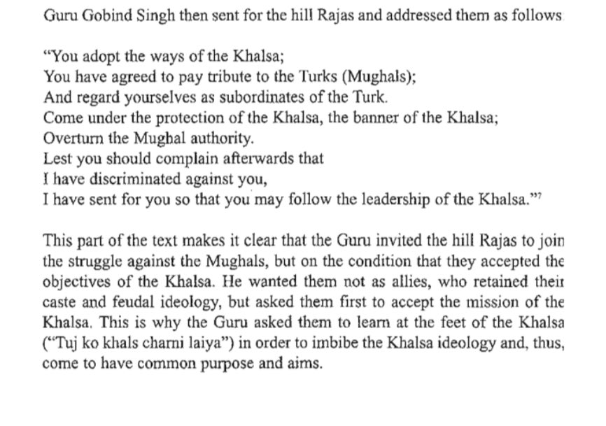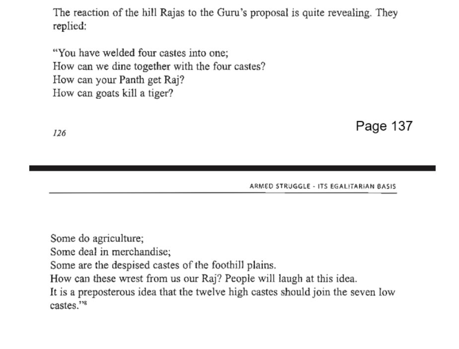 Also, Guru Gobind Singh Ji invited hill rajas to become KHALSA and fight against mughals. Hill rajas REJECTED it by saying that they cant fight with someone who wielded the 4 castes into one. https://t.co/BKHCRmx68V