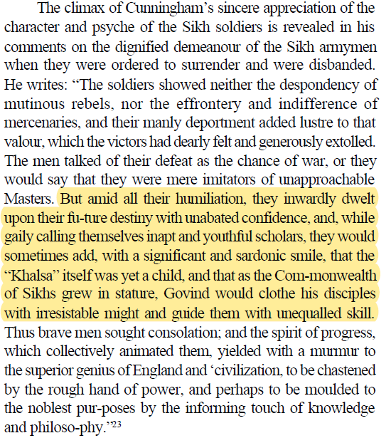 Joseph Davey Cunningham (1812-1851) had deep respect for the character and fortitude of Sikh soldiers. He wrote how when faced with defeat and disbandment, the Sikh soldiers displayed neither despair nor apathy but carried themselves with great dignity. https://t.co/rh0s5yDVFD