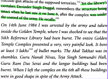 9/10: The White Paper falsely alleges that militants deliberately set fire to the Sikh Reference Library on June 5th. Eyewitness Devinder Singh Duggal challenges the veracity of this claim. Source: Citizens for Democracy, Oppression in Punjab, 66-67 https://t.co/HaiX7fYO1k