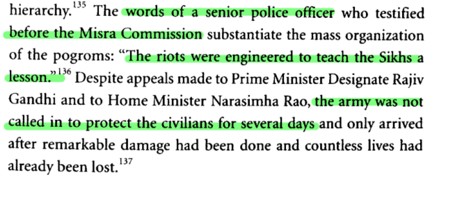 (1) Here are the words of a senior police officer regarding the 1984 genocide. In addition, Rajiv Gandhi did not immediately call the Indian army to protect the Sikhs as he could have. Source: Inderjit Jaijee, Politics of Genocide, 2-11, 31, https://t.co/ot2XaodYqX