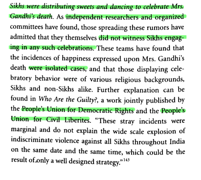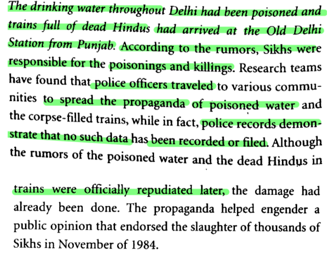(2) There were several rumors propagated by the Indian government to set up the 1984 genocide. Here is one such rumor: Source: People's Union For Democratic Rights (PUDR) and People's Union For Civil Liberties (PUCL), Who are the Guilty ?, 15 (book) https://t.co/LO7KSQZCZd