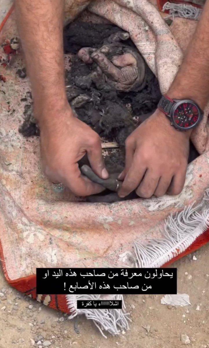 A Gazan trying to identify a member of his family from the fingers that remain. #Israel #Gaza https://t.co/ChiztdpBCT
