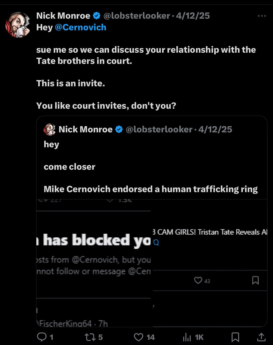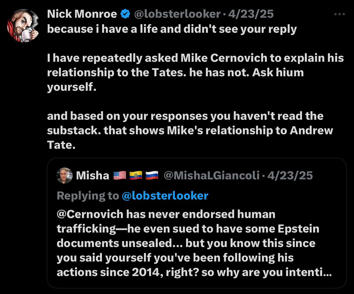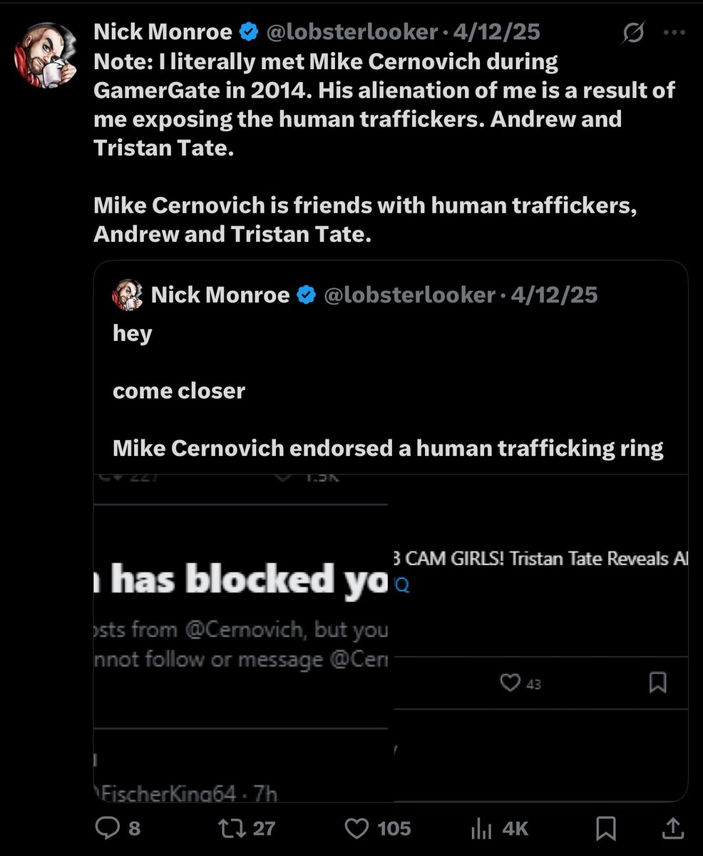 @lobsterlooker Nick Monroe has known Cernovich since 2014. Monroe exposed the War Room chats that revealed the membership of Wohl, Cernovich Ali Alexander and others.