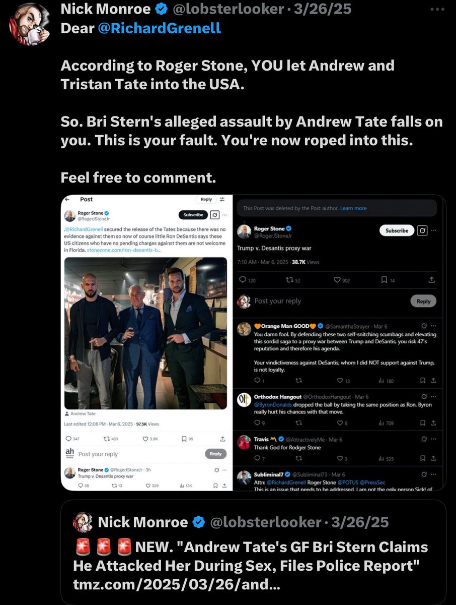 Speaking of Ingrassia and Grenell, in February I wrote about three White House officials who had advocated for the Tate brothers. The third was Alina Habba, who is currently serving as (disputed) acting U.S. Attorney for New Jersey.