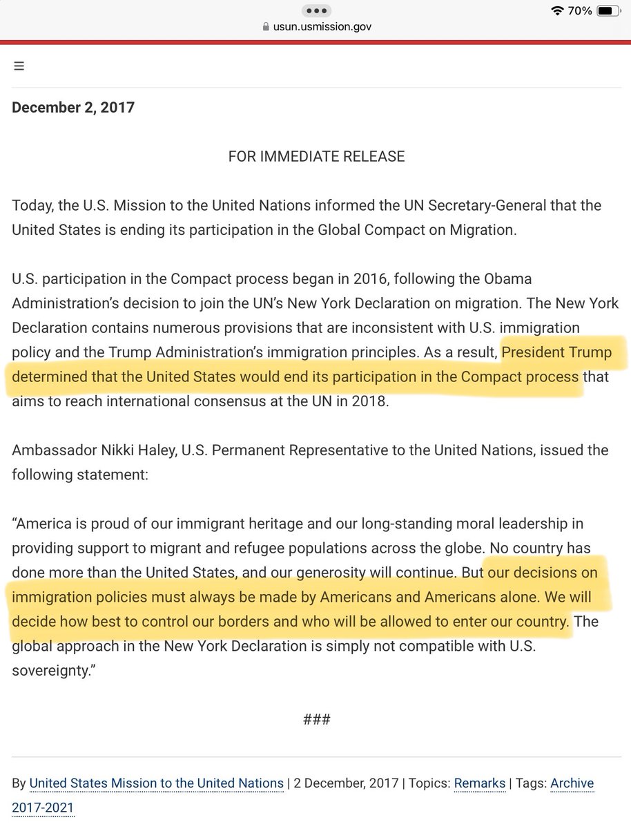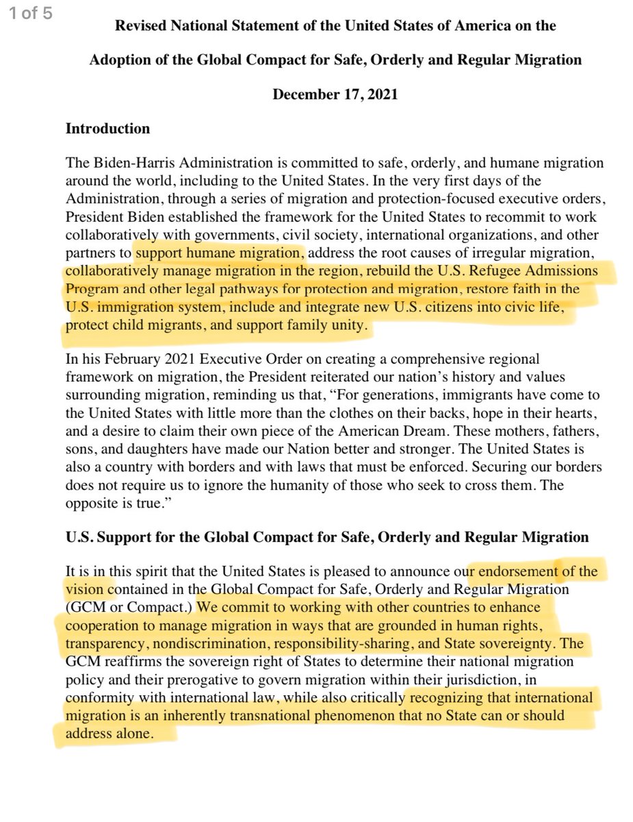 Although the UN Global Compact for Safe, Orderly and Regular Migration violates U.S. law, the principles of separation of powers, and U.S. sovereignty, the Biden administration adopted it in 2021. https://t.co/vyhcDRhyVO