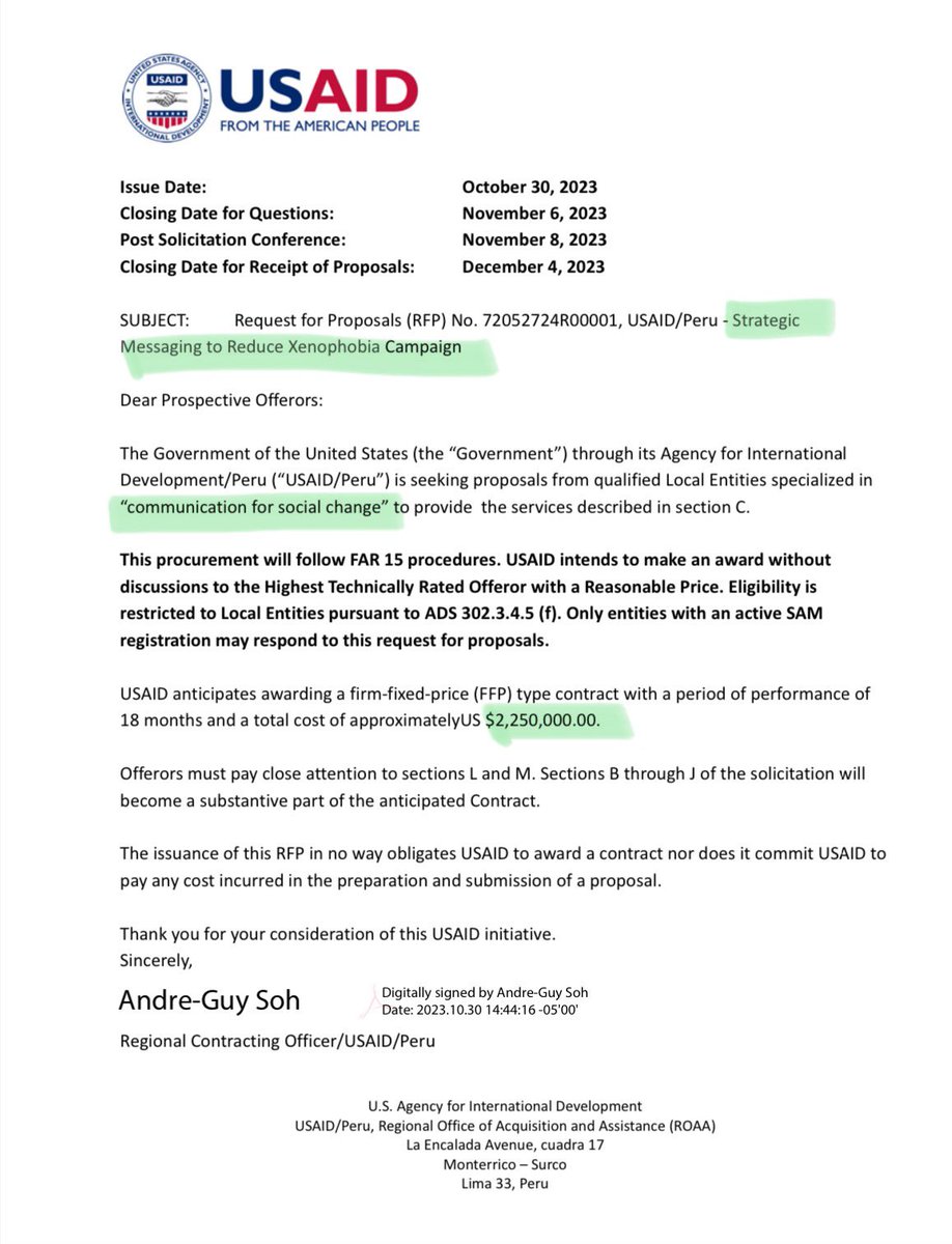 🇵🇪 Why is USAID targeting Peru with a $2.25mm “strategic messaging” psychological operation to “curb xenophobia”? 👀 @frankgaffney
