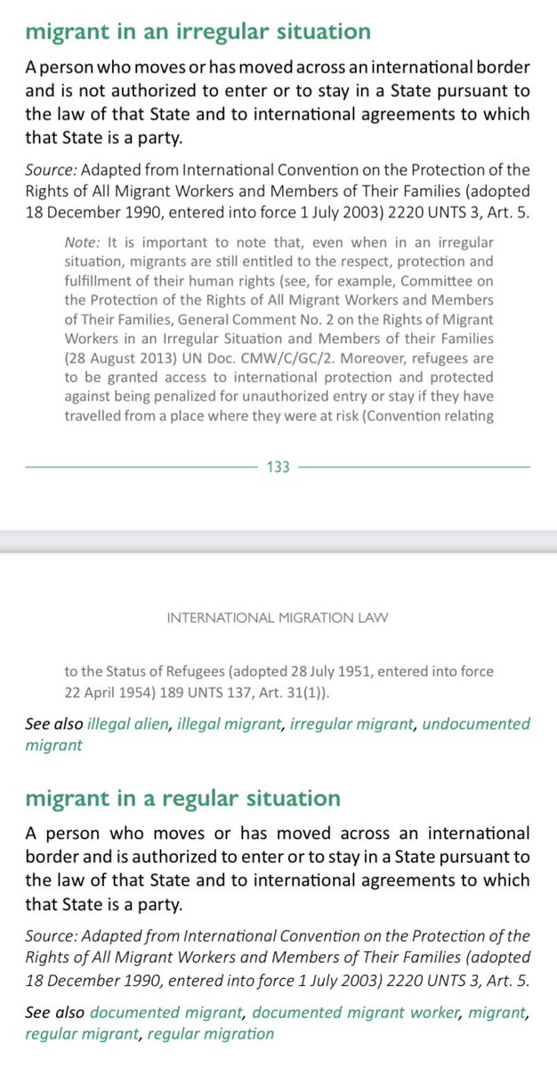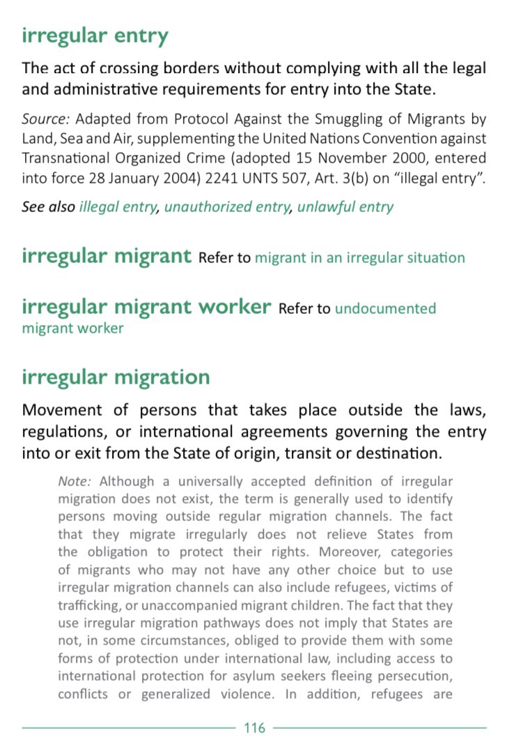 According to IOM’s 248-page Glossary on Migration, “irregular migration” is UN-speak for illegal entry: “the act of crossing borders without complying with all the legal and administrative requirements for entry into the [country].” https://t.co/SahIjxk0RS