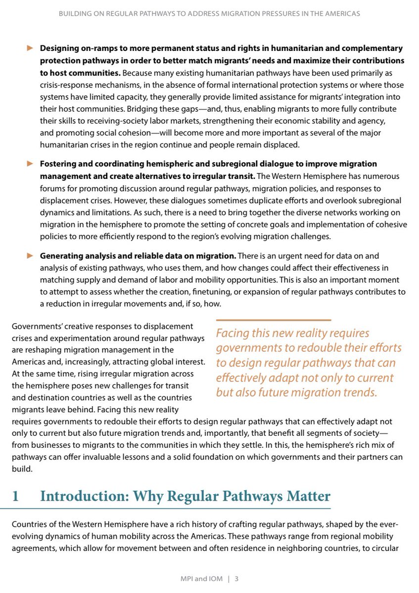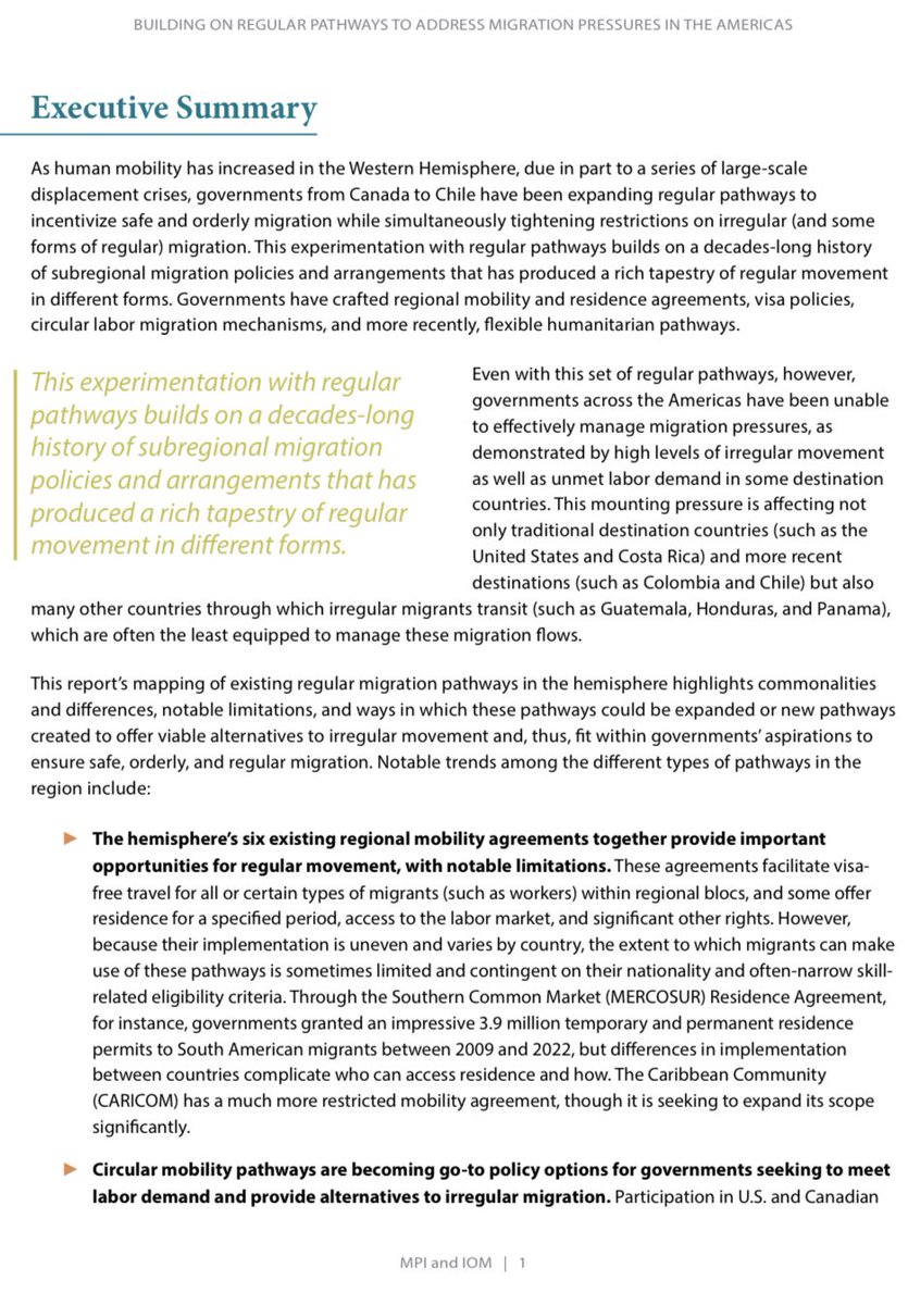 From the MPI report’s executive summary: “This experimentation with regular pathways builds on a decades-long history of subregional migration policies and arrangements that has produced a rich tapestry of regular movement in different forms.” https://t.co/KH8HFL3zF4