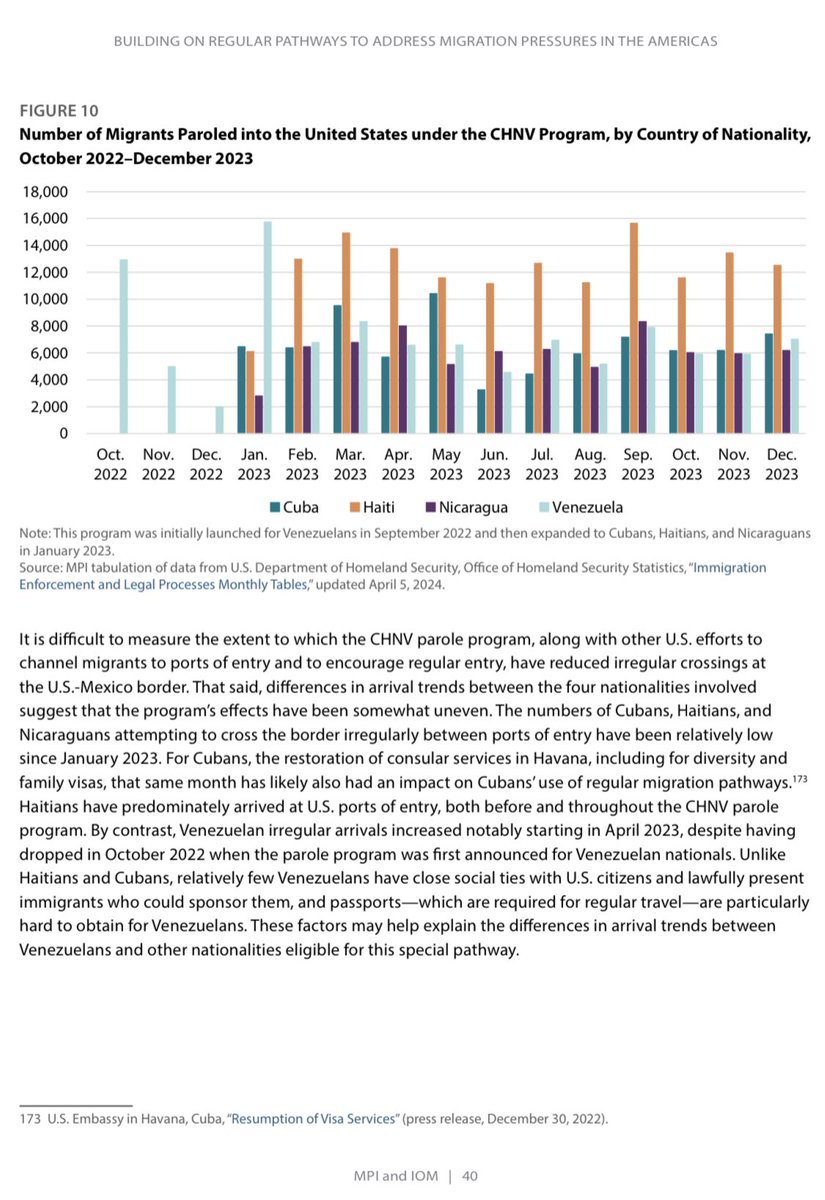 “Number of Migrants Paroled into the United States under the CHNV Program, by Country of Nationality, October 2022-December 2023” (when first announced in Oct 2022, the “humanitarian parole” program was for Venezuelans only). https://t.co/ruef9joKKG