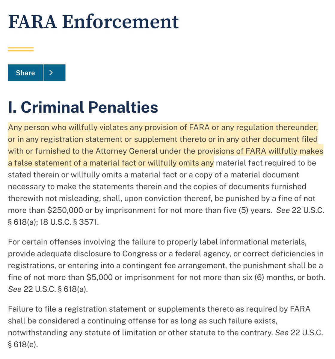 @EndWokeness @kylenabecker Seems like Omar might be in violation of the Foreign Agents Registration Act #FARA 🤔 https://www.fara.us/?gclid=Cj0KCQiA2eKtBhDcARIsAEGTG40eaTukuu3iG63vwYo2KRpnzjVQ8Mu_z4EAWeaI-NLPguYbyRVEmjgaAlHtEALw_wcB