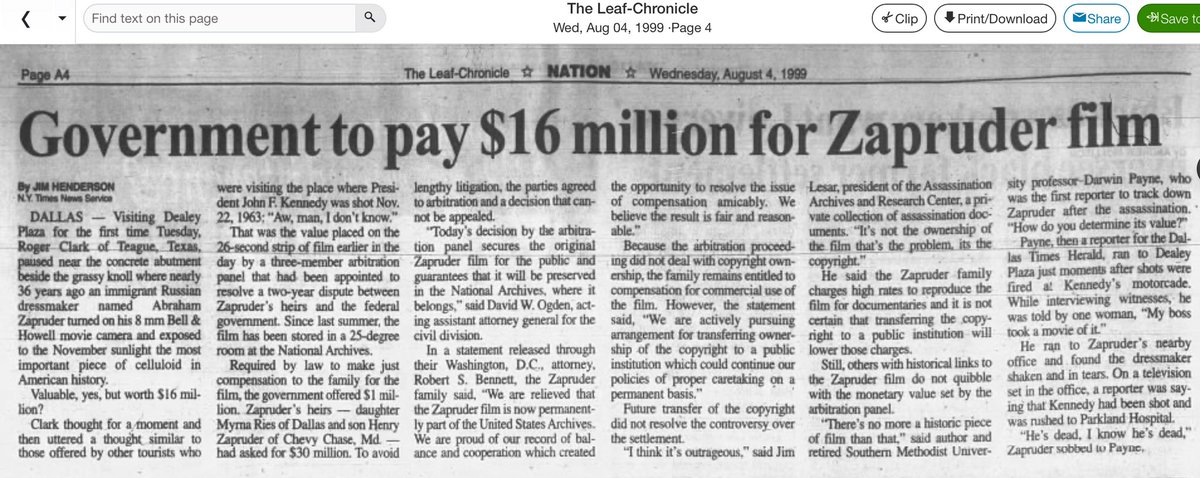 Government to pay $16 million for Zapruder film (1999) https://t.co/ageiR9mhtY