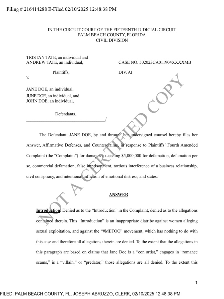 Big thanks to eagle-eyed @CrayonMurders for spotting Joseph McBride, an attorney who represents Andrew and Tristan Tate in the defamation action in Florida against Jane Doe, a victim-witness in the Tate brothers’ prosecution in Romania for alleged sex trafficking. 👀