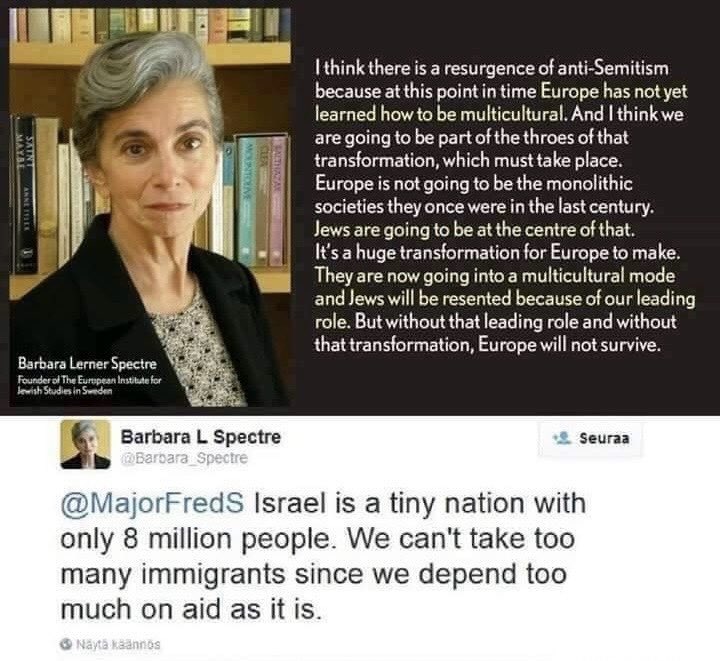 Barbara Spectre brags about how HER people have created a thriving nationalist culture in US and Israel. Within the same video, she highlights why HER people need to destroy European nationalism in the West. Barbara is one of many jewish activists who employ double standards. https://t.co/f1n7YK3lhW