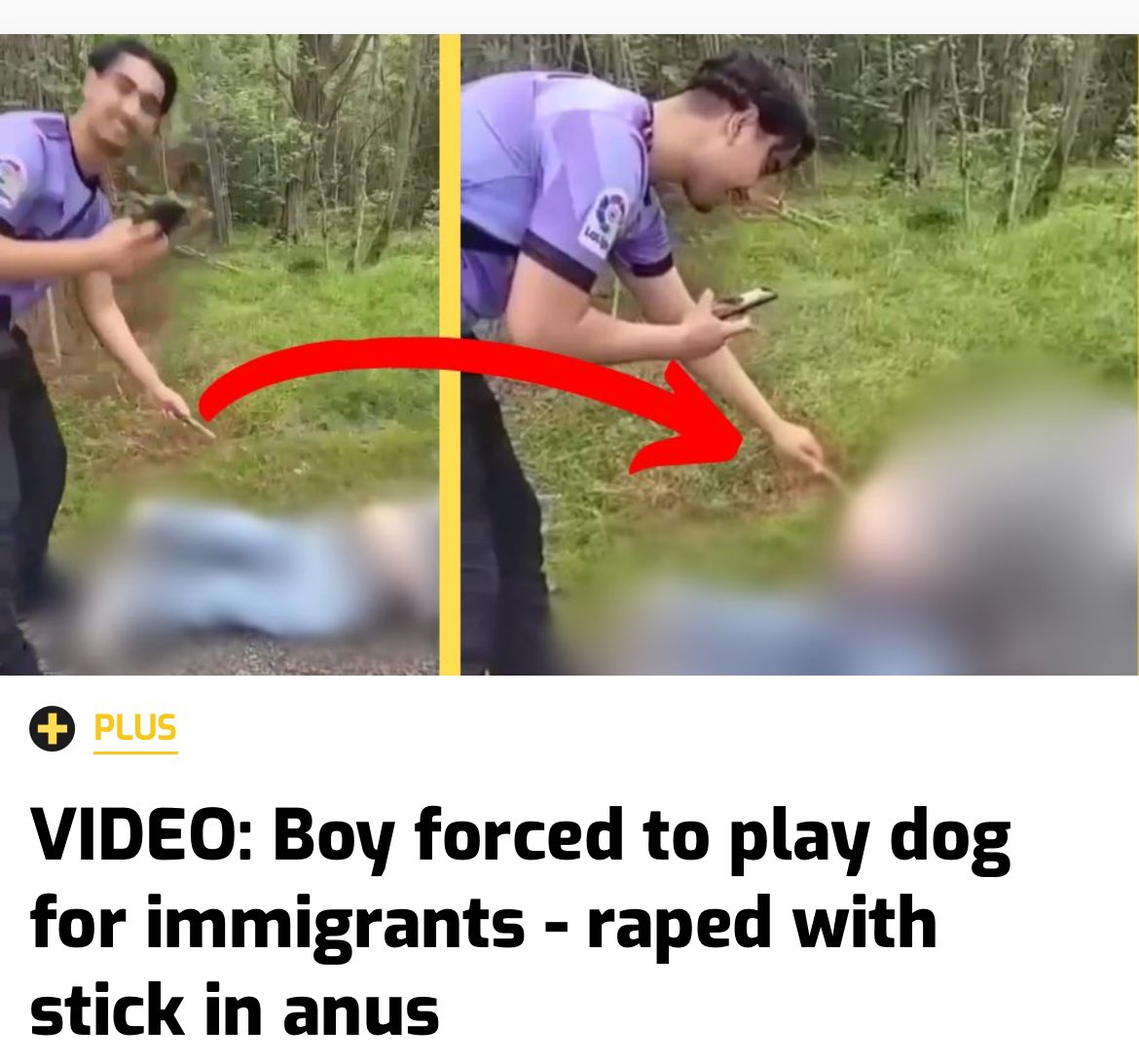 Sweden: Group of Arab and Afghan immigrants forced a Swedish boy to act like a dog and then r*ped him with a stick The horrific video shows the Muslim immigrants laughing and calling the teenage boy “Swedish whore” as they violated him. Deportation is too kind for these barbarians.