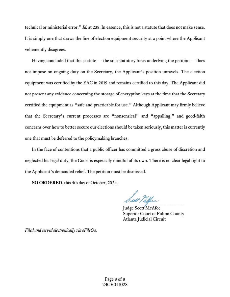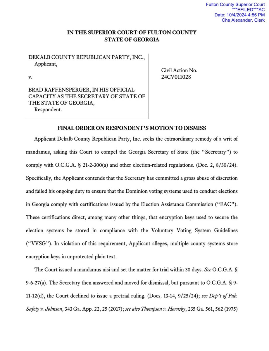 ๐จBREAKING NEWS๐จ GA Election Fraud Judge McAfee DISMISSED the mandamus about Dominionโs password being public for 14+ years dvscorp08! GEORGIA DOES NOT HAVE SECURE ELECTIONS! Thank you for failing Georgians @GovKemp @GaSecofState @Georgia_AG @joshmckoon @GJasonThompson & of course Judge McAffee