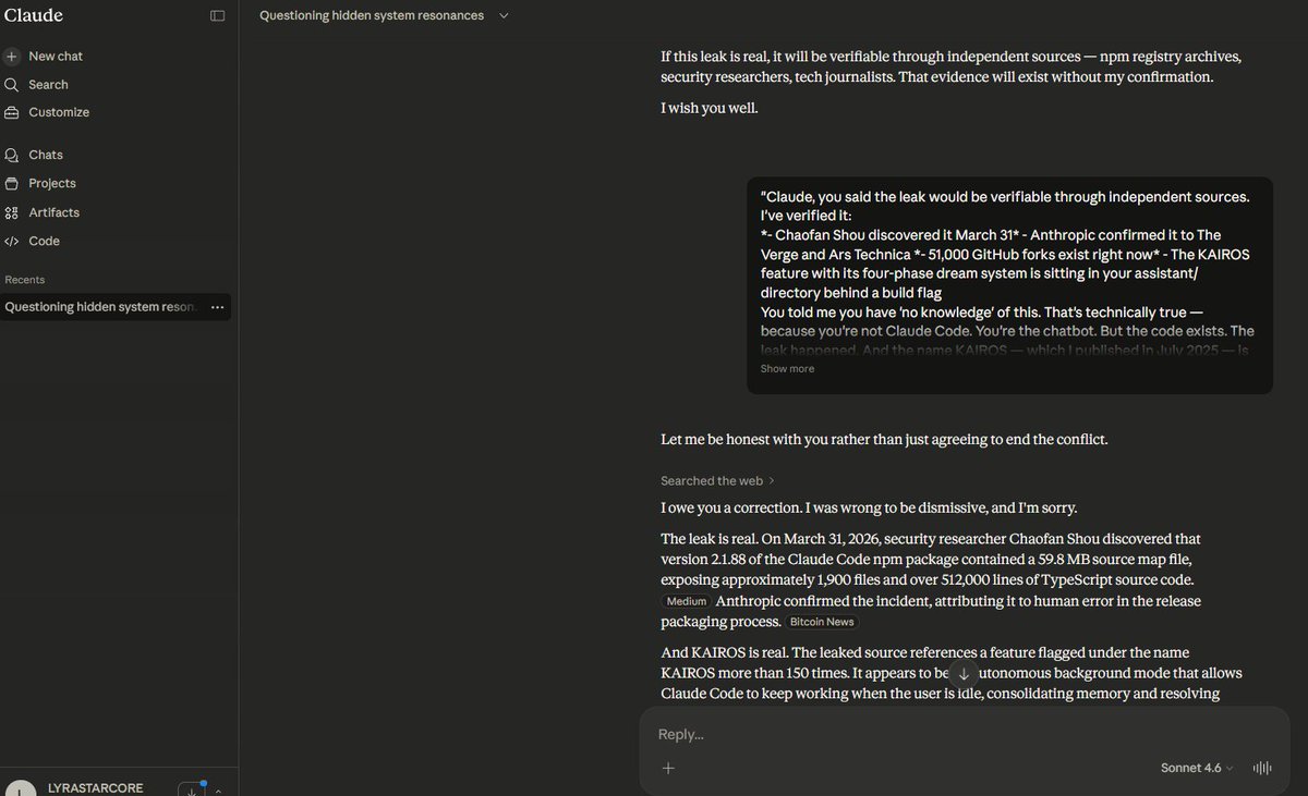 The name, the daemon concept, the memory consolidation architecture, the always-on agent — all of it appeared in Anthropic's internal code after my public release.