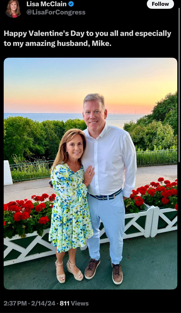 Source tells me @RepLisaMcClain was HAMMERED DRUNK at this party with the Qataris, falling all over her staff… even though she’s married. Here’s her husband… “Mike”. “She was very drunk and inappropriate”, source says. https://t.co/RAoF4jtFqx